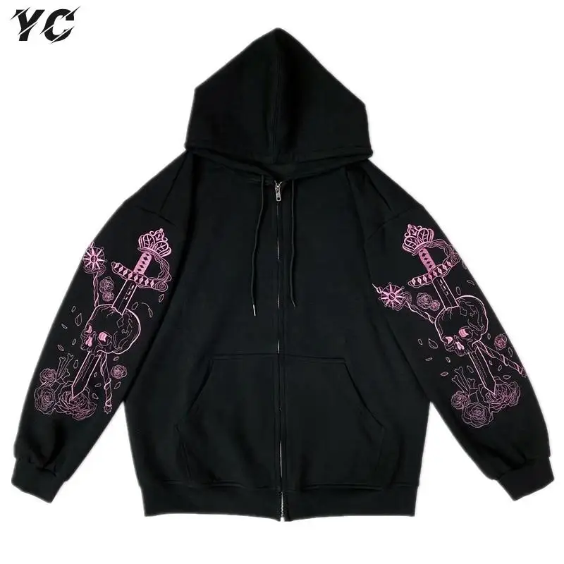 Худи HOUZHOU готика, Харадзюку, топы на молнии в стиле панк, японск...