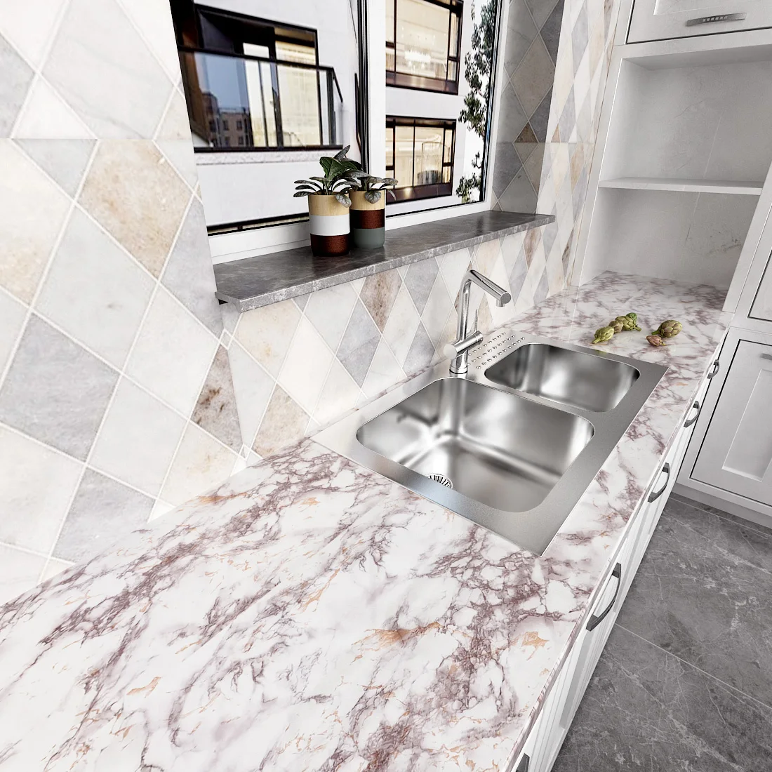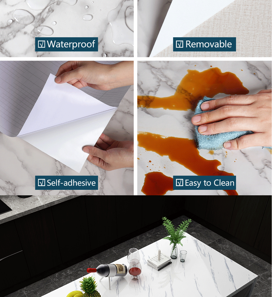 Виниловая пленка Wokhome, самоклеящаяся мраморная настенная бумага,...