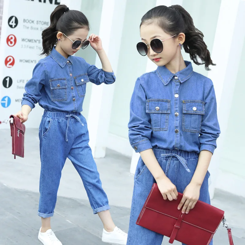 Осень-зима 2019, комплекты одежды для девочек, модный детский спортивный костюм, джинсовая одежда для подростков, зимние костюмы