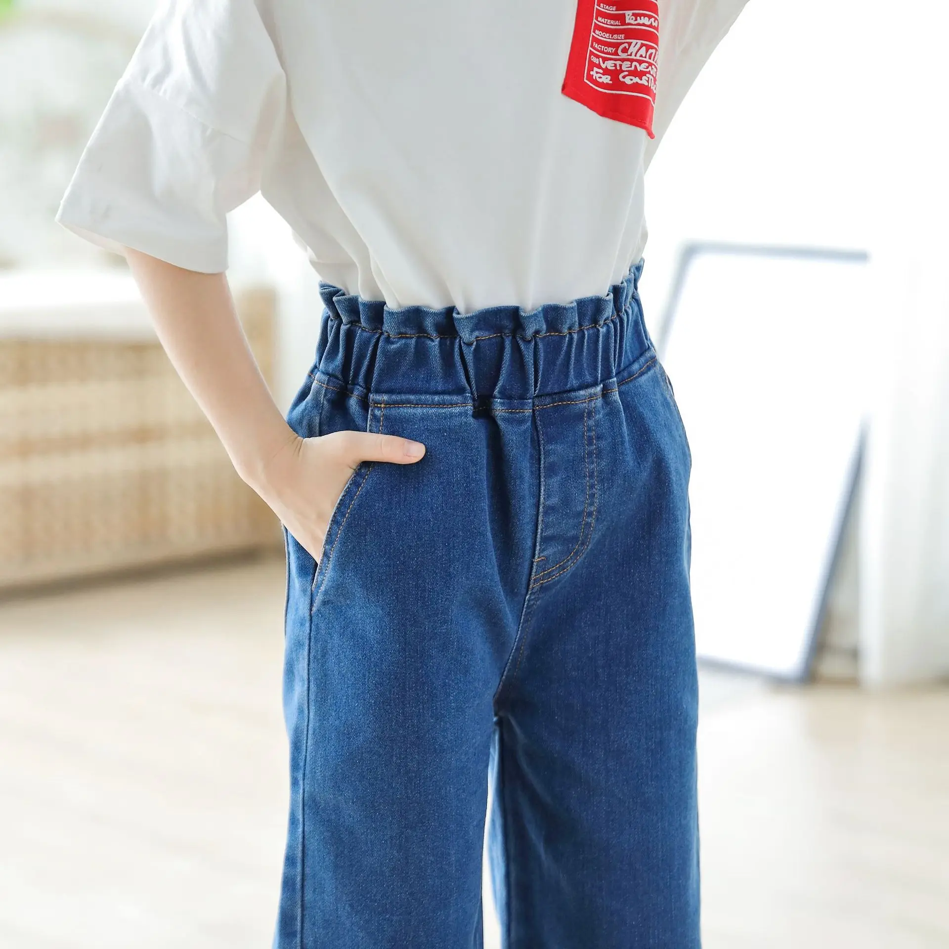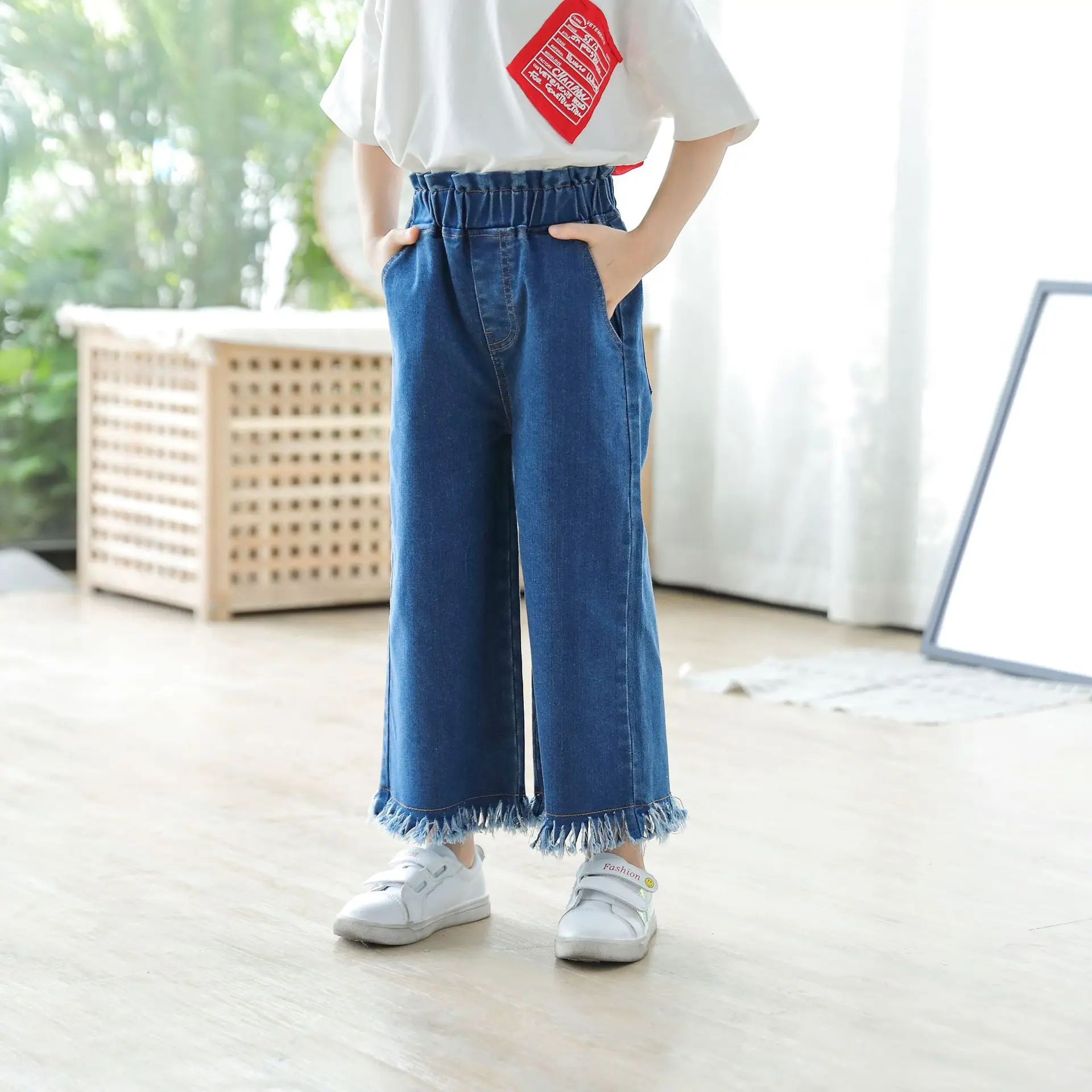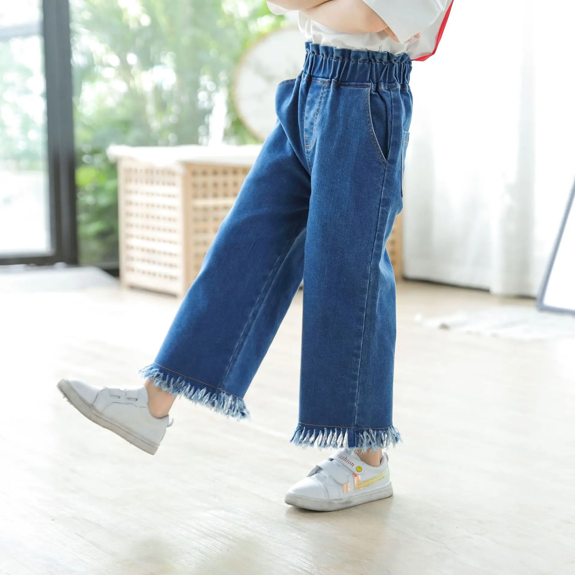 Осенние джинсы для девочек, детские рваные джинсы с бахромой, широкие штаны для подростков, повседневные школьные брюки для девочек 3-12 лет, 2019