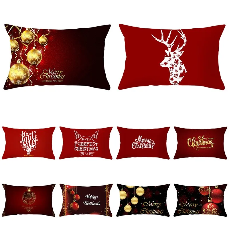 Рождественская Подушка на красную тему, 30*50 см, прямоугольная плюшевая декоративная подушка, чехол, праздничная домашняя комната, аксессуары, чехол для диванной подушки