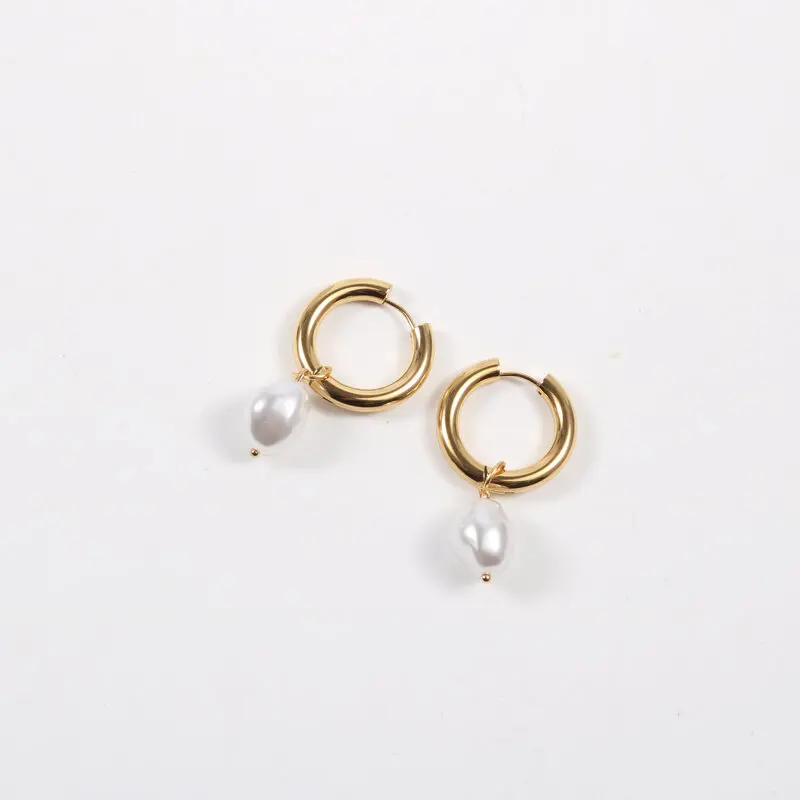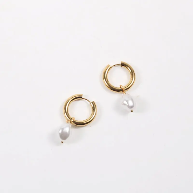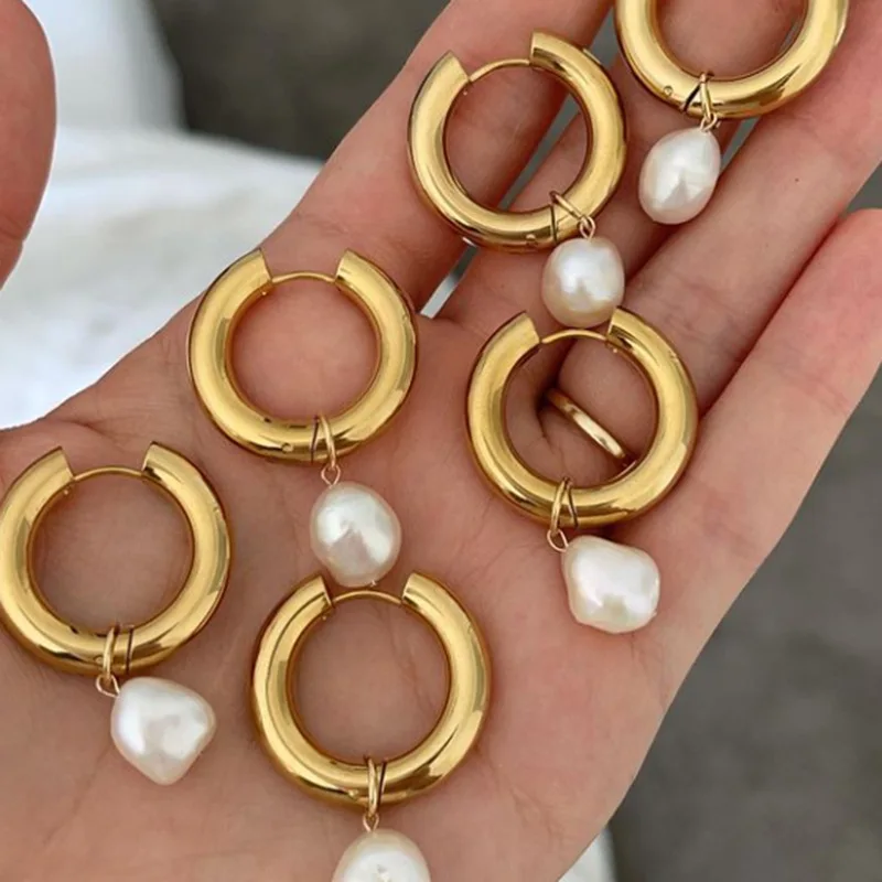 Водонепроницаемые и матовые минималистичные открытые жемчужные серьги из нержавеющей стали с покрытием из PVD