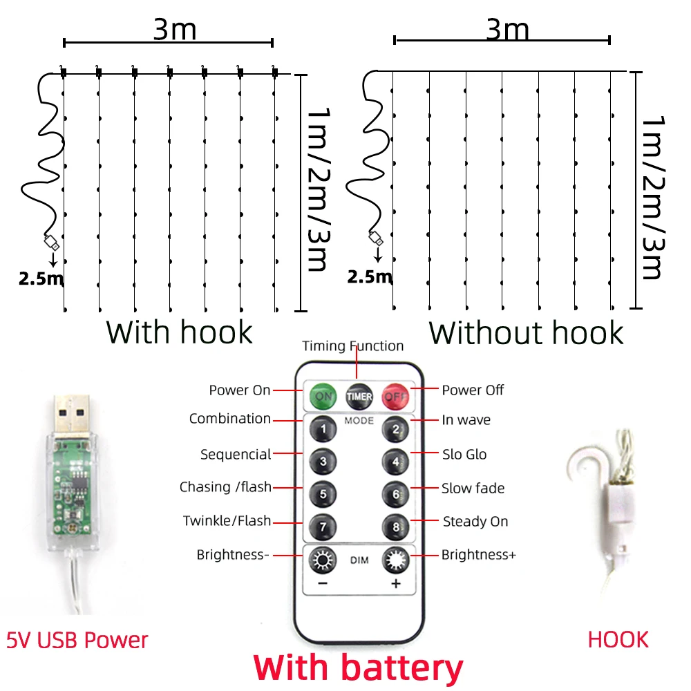Размер: ширина: 3 м * Высота: 3 м с 300 светодиодами