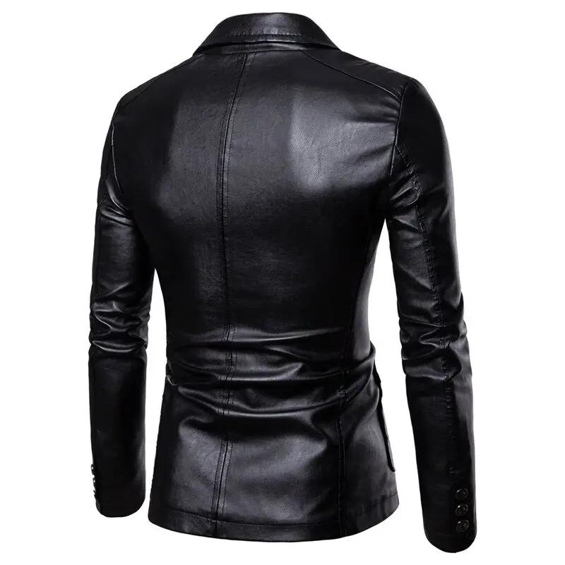 Мужской однотонный однобортный костюм, облегающий кожаный костюм с длинным рукавом, Осень-зима, прямая продажа