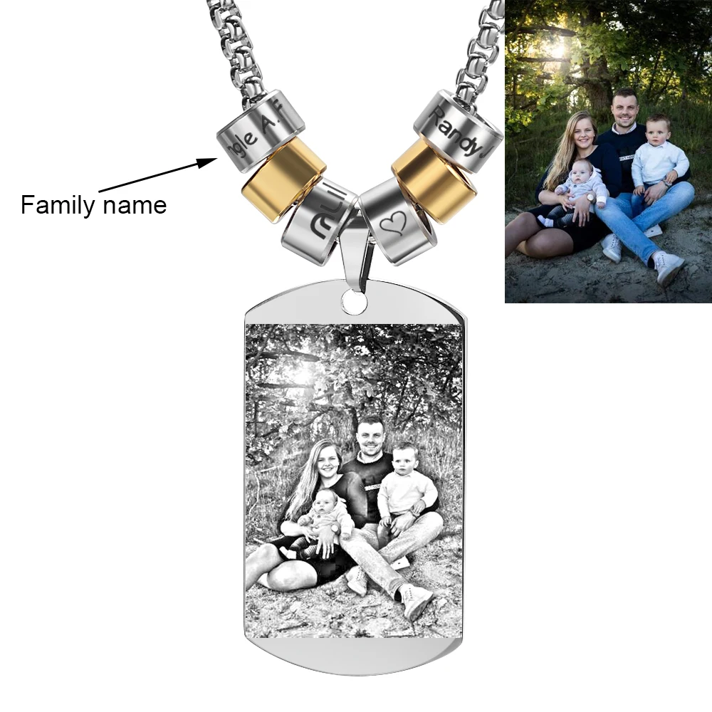 Индивидуальное семейное фото из нержавеющей стали, ожерелье для женщин, подвеска с гравировкой имени, памятный круглый квадратный кулон, ювелирные изделия для семьи