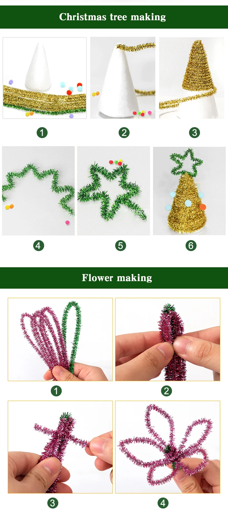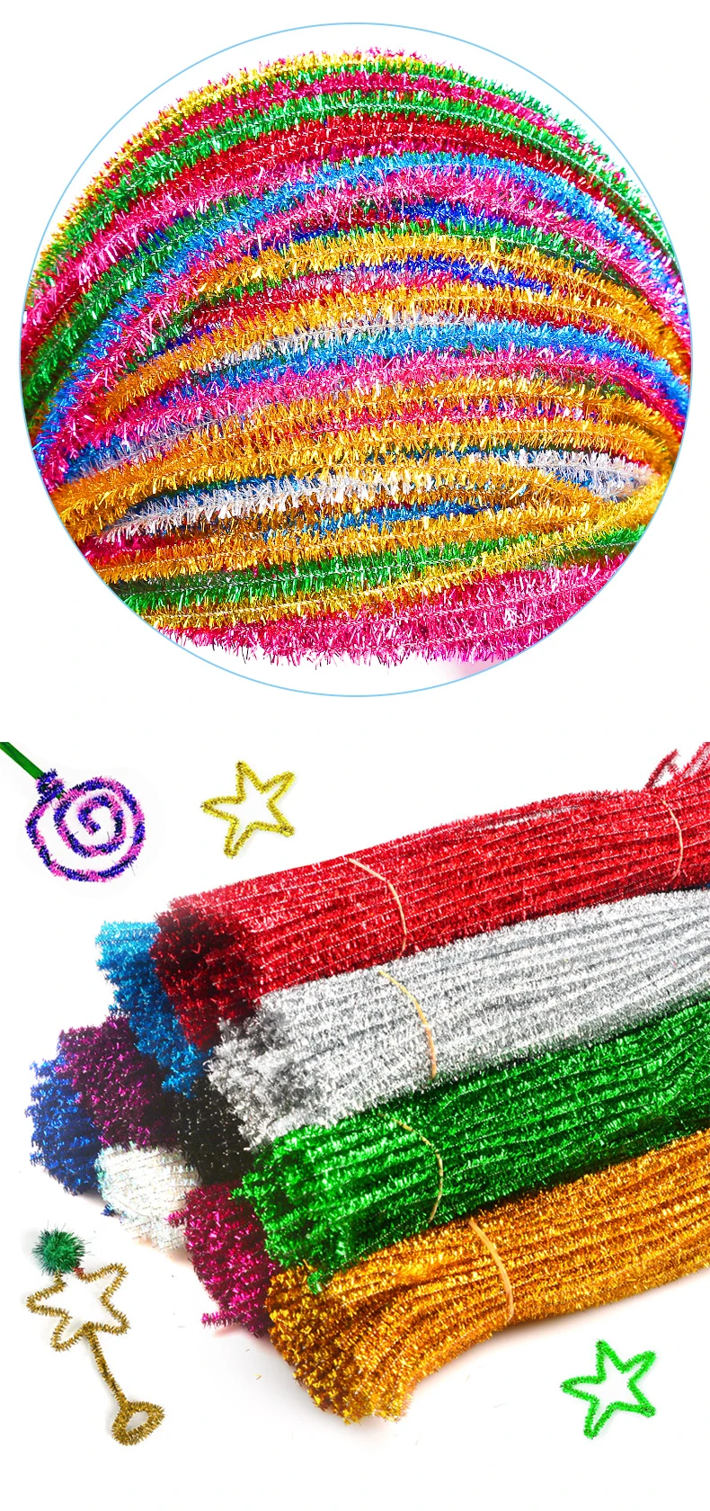 Блестящие искусственные плюшевые палочки мишуры, палочки из проволоки, детские развивающие товары для рукоделия, игрушки для рукоделия, 3050100 шт.