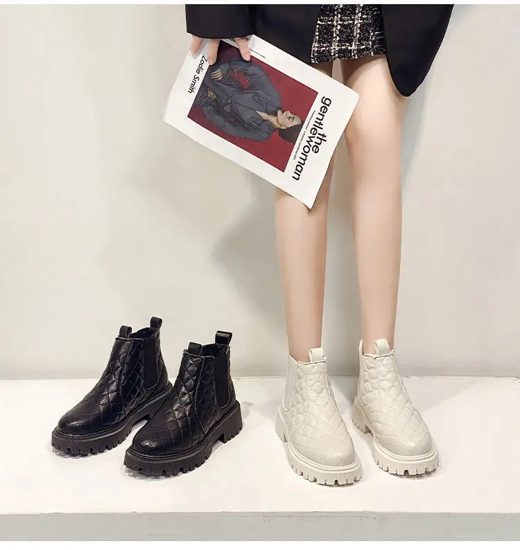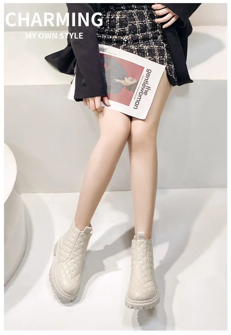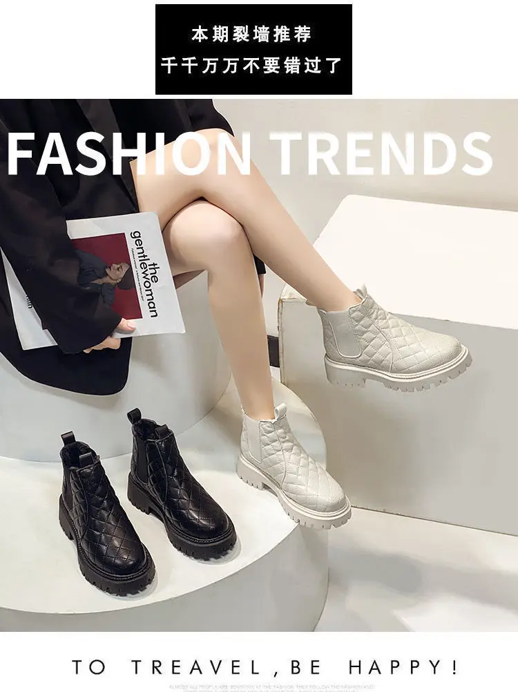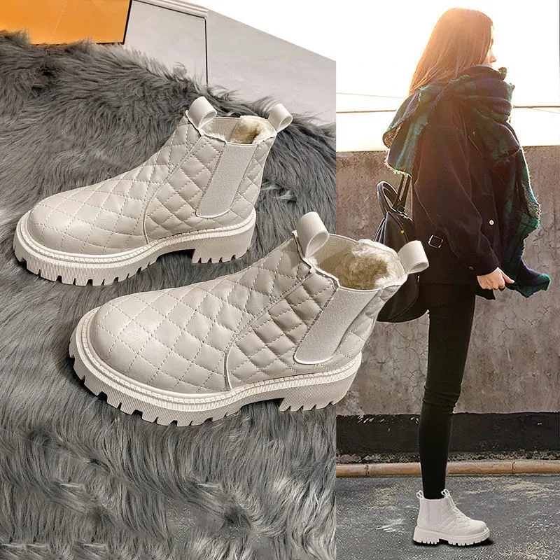 Ботинки мартинсы женские нескользящие, теплые короткие, с бархатной подкладкой, роскошные дизайнерские, бежевые, черные
