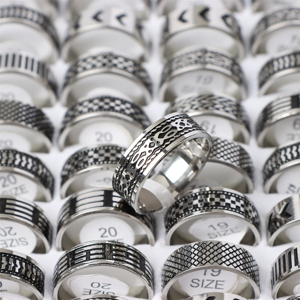 30 шт.лот винтажные толстые тяжелые черные масляные капающие кольца из нержавеющей стали для женщин и мужчин Смешанные стильные подарки для вечерние Ринок ювелирные изделия