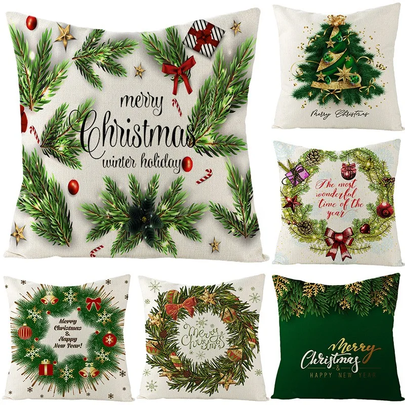 Рождественская зеленая наволочка 45*45 см, полосатая декоративная подушка для рождественской подушки, чехол для дивана