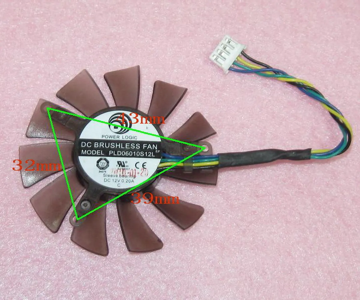 Кулер для видеокарты R20b POWER LOGIC PLD06010S12L, запасной вентилятор для охлаждения видеокарты 32 мм x 39 мм x 43 мм, 12 В, 0,20 А, 4-контактный разъем