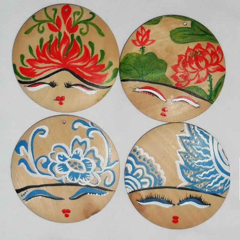 Круглые деревянные диски с отверстиями, необработанные предваритель...