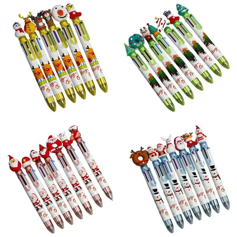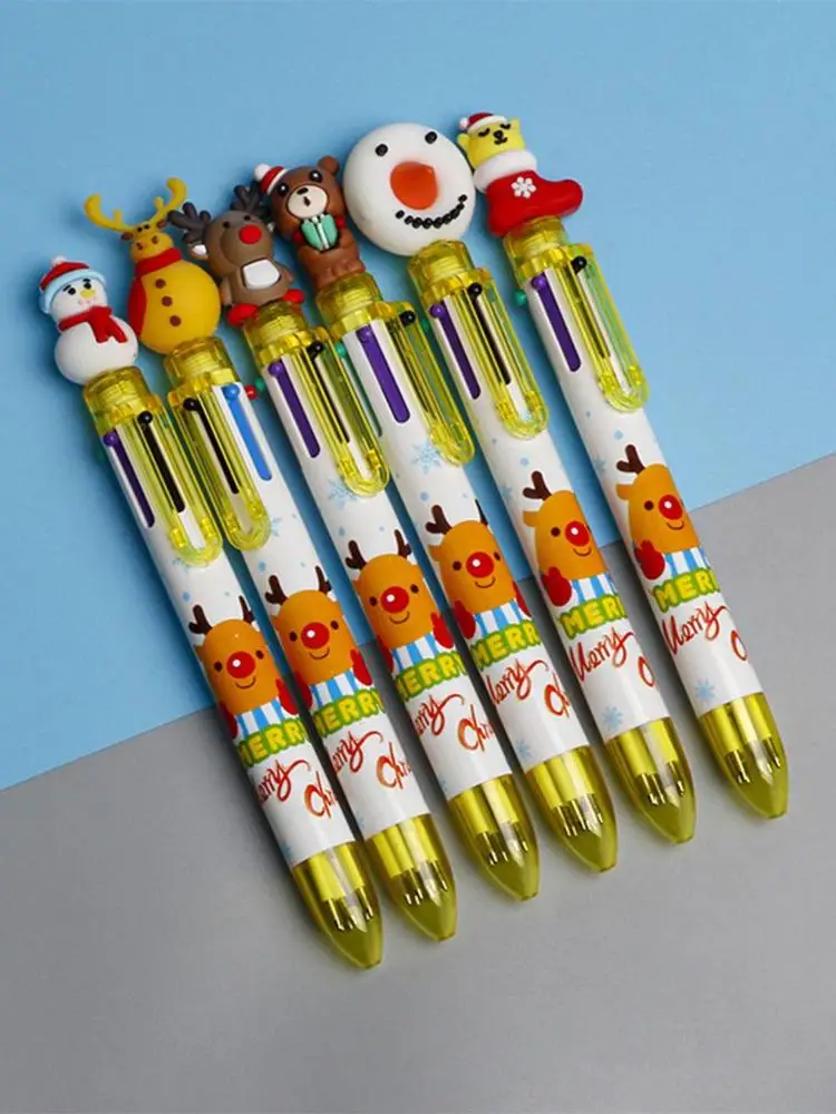 1 шт. ручка для учетной записи, 6 цветов, шариковая ручка с прессом для начальной школы, ручка, канцелярские принадлежности, подарок, рождественский подарок Q1t7