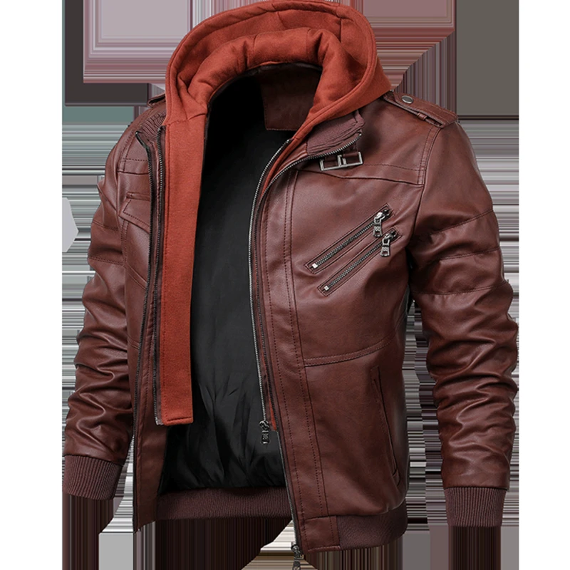 Мужская Осенняя кожаная куртка с капюшоном, мотоциклетная куртка из...