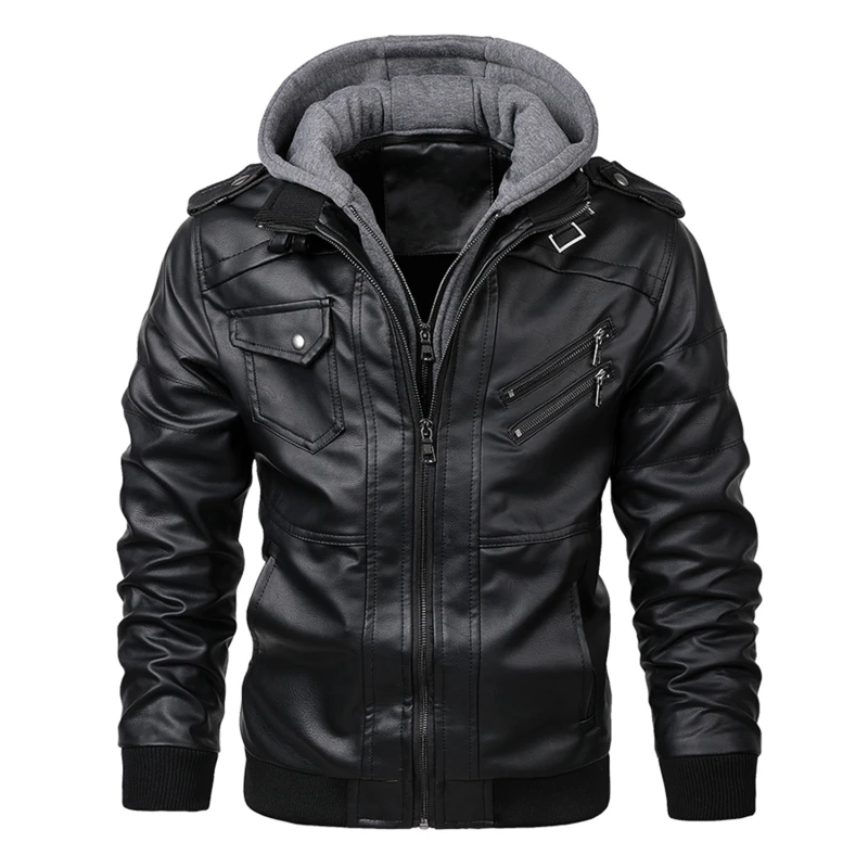 Мужская мотоциклетная кожаная куртка, модная ветровка с капюшоном, ...