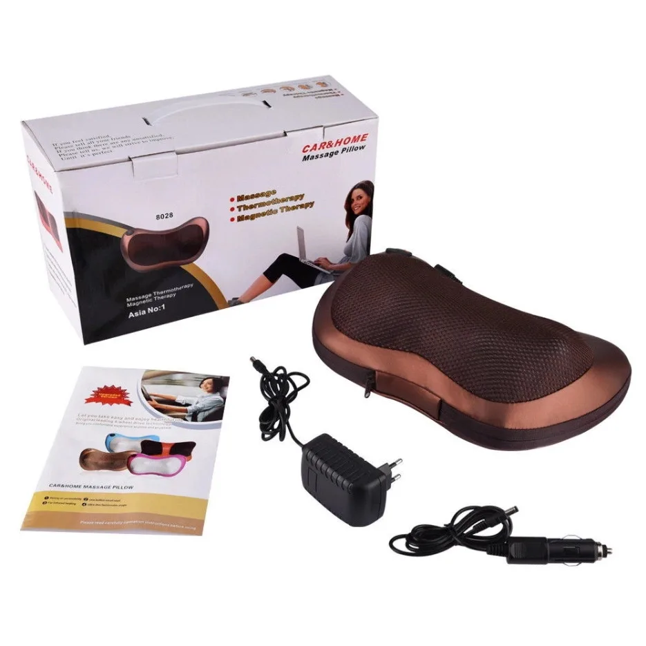 Массажная подушка с подогревом для шеи и спины Massage Pillow предназначена для проведения разминающего роликового массажа разных частей тела человека (массаж типа «Шиацу»). Сам массаж осуществляется при помощи восьми массажных роликов, описывающих круговые вращательные движения, подобно пальцам массажиста.