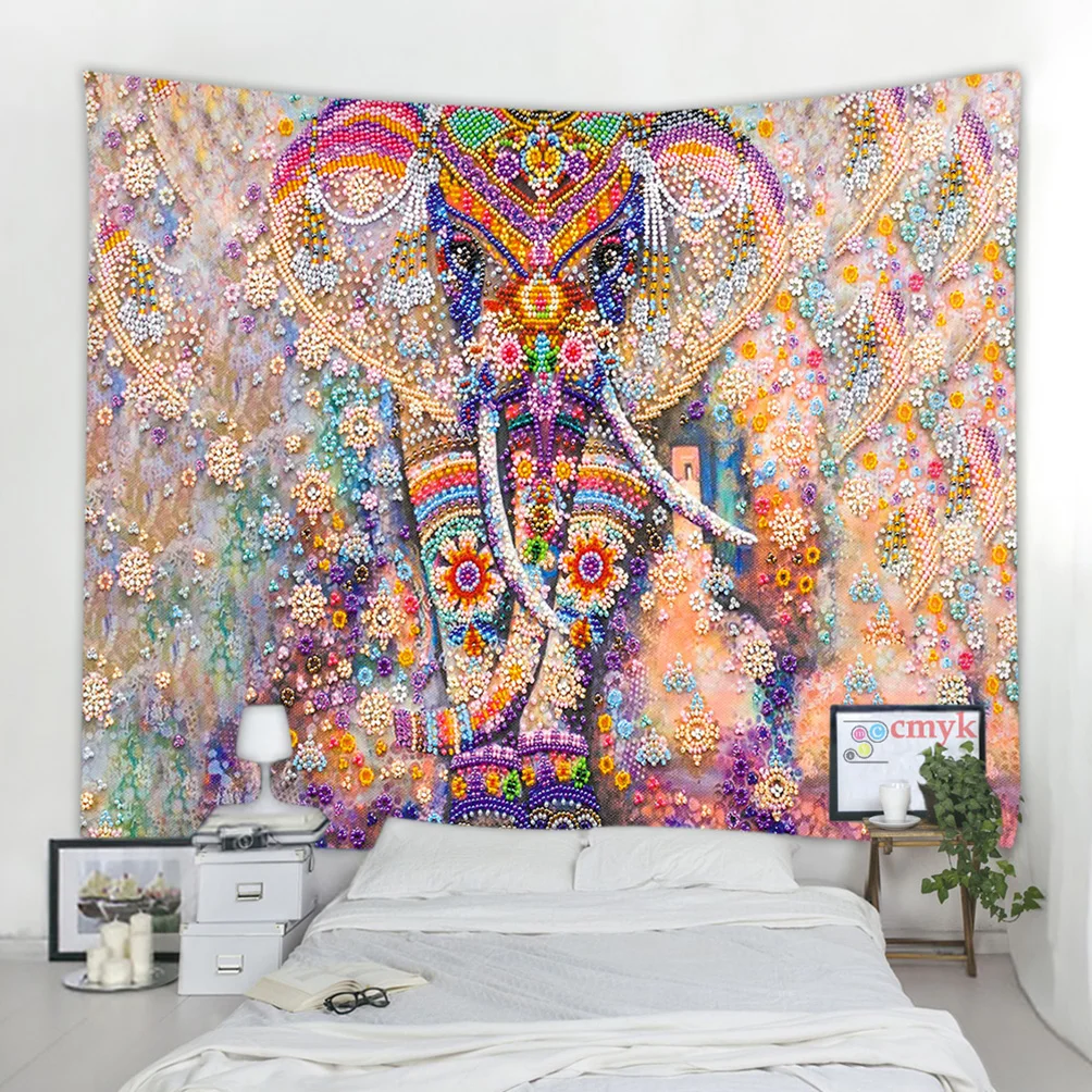 Красочный жемчужный слон гобелен мозаичный стиль хиппи бохо настенные гобелены Мандала тканевый коврик Декор для гостиной
