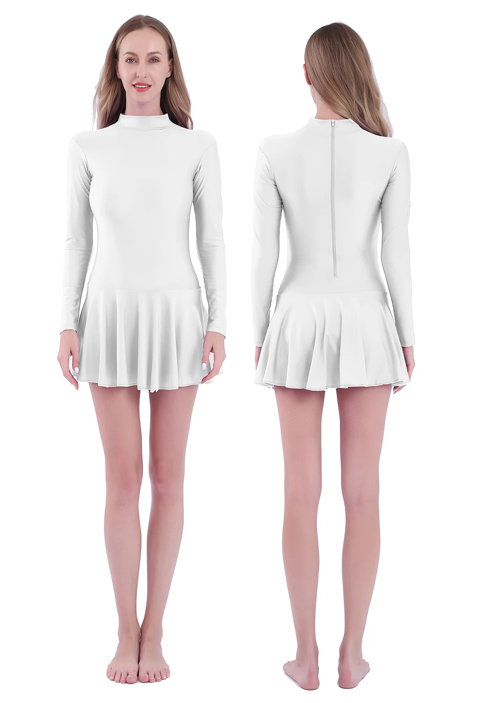 Женское балетное танцевальное трико Aoylisey с юбкой, цельнокроеное боди с длинным рукавом и плиссированной юбкой, латиноамериканское боди с высокой горловиной