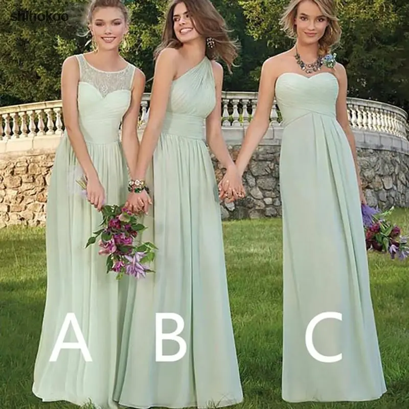 Шифоновые платья а-силуэта, мятно-зеленые платья подружек невесты, без рукавов, с круглым вырезом, на одно плечо, без бретелек, длиной до пола для гостей свадьбы, 2021