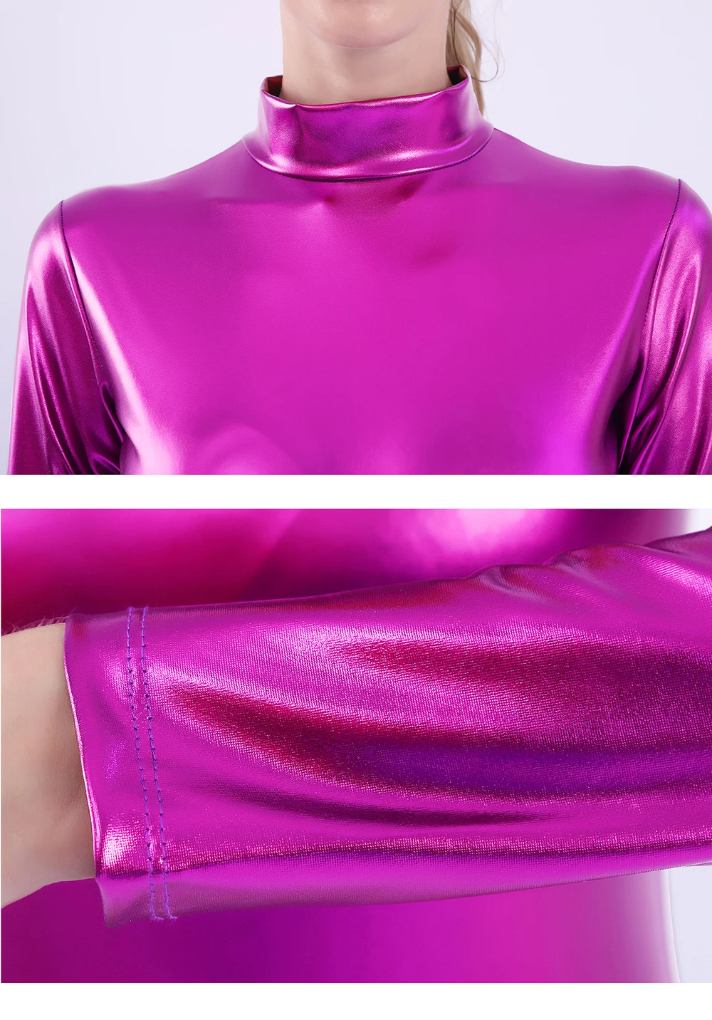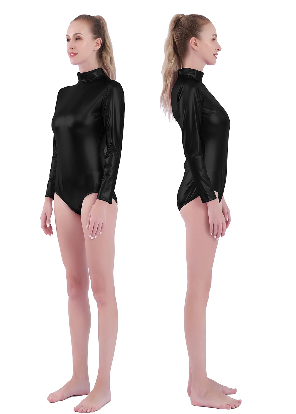 AOYLISEY, Женские Блестящие купальники с длинным рукавом металлик, черные боди, обтягивающие сценические костюмы для сцены, Купальник для балета, танцев