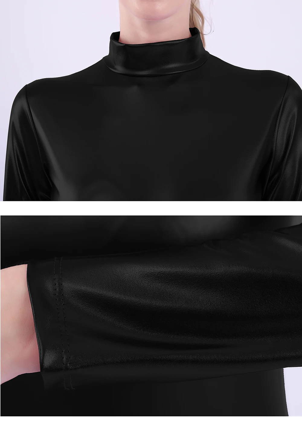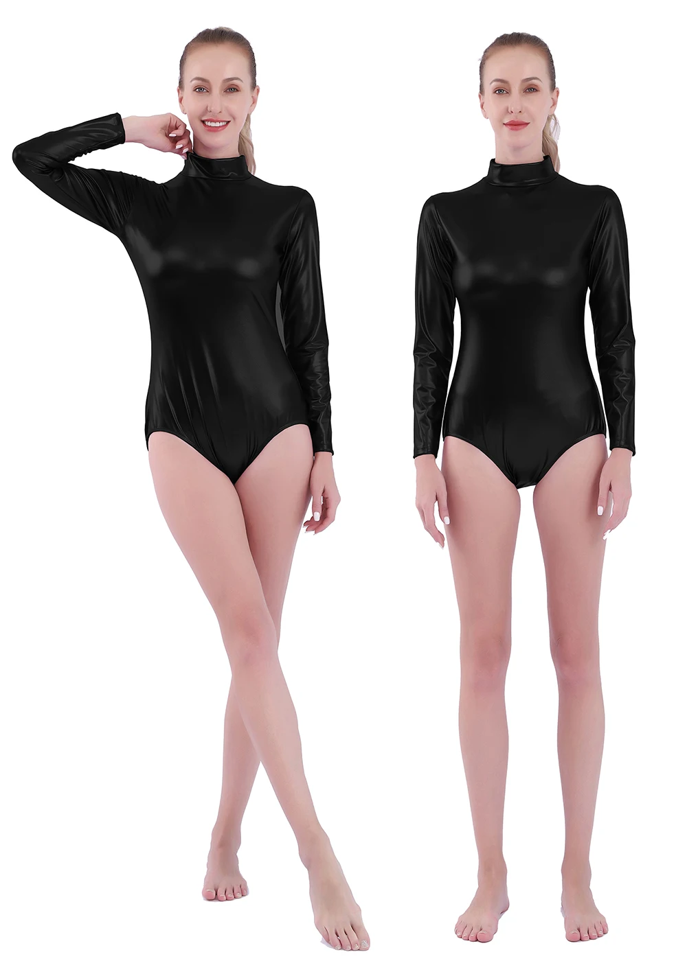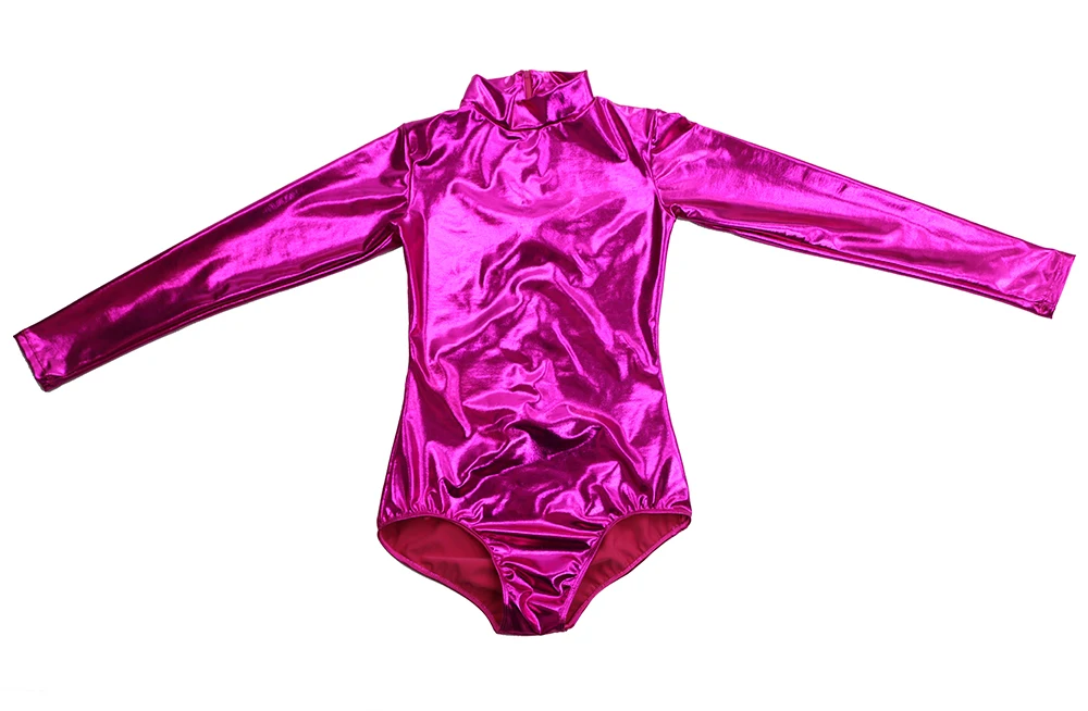 Для женщин купальник для балета, танцев, блестящий металлик с длинным рукавом тренировочная одежда для занятий гимнастикой, черная комбинация, узкие Стадия сценические костюмы