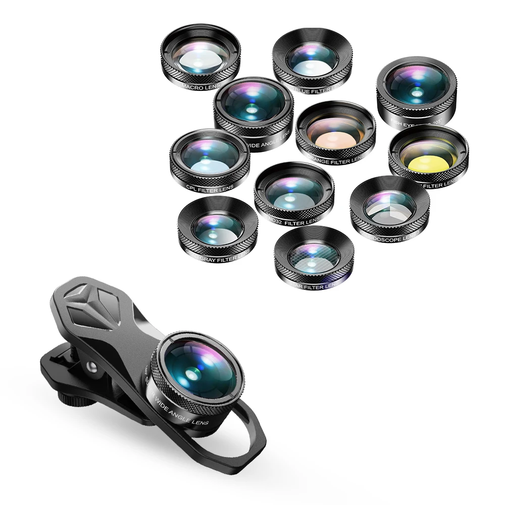 APEXEL 11в1 набор объективов для камеры телефона рыбий глаз широкоугольный полный grad фильтр CPL ND макролинзы для смартфонов iPhone Samsung Redmin