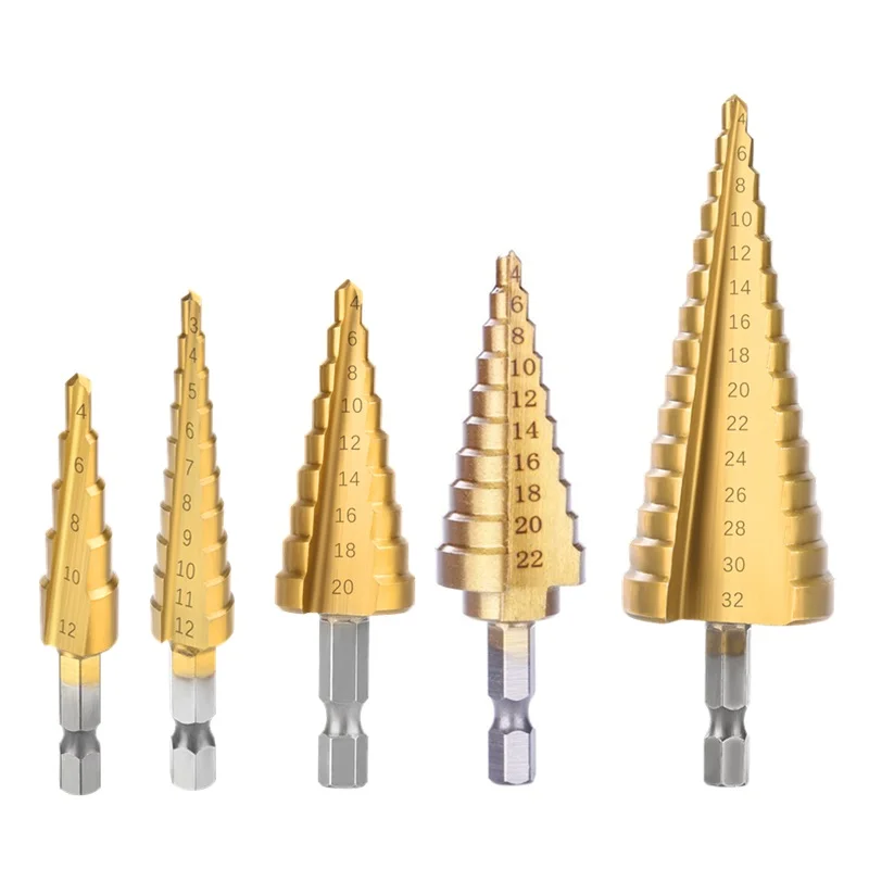 Ступенчатое сверло 3-12 4-12 4-20 4-22 4-32 Электроинструмент из быстрорежущей стали с покрытием из быстрорежущей стали с титановым покрытием Металлический резец для сверления отверстий по дереву Конусное сверление