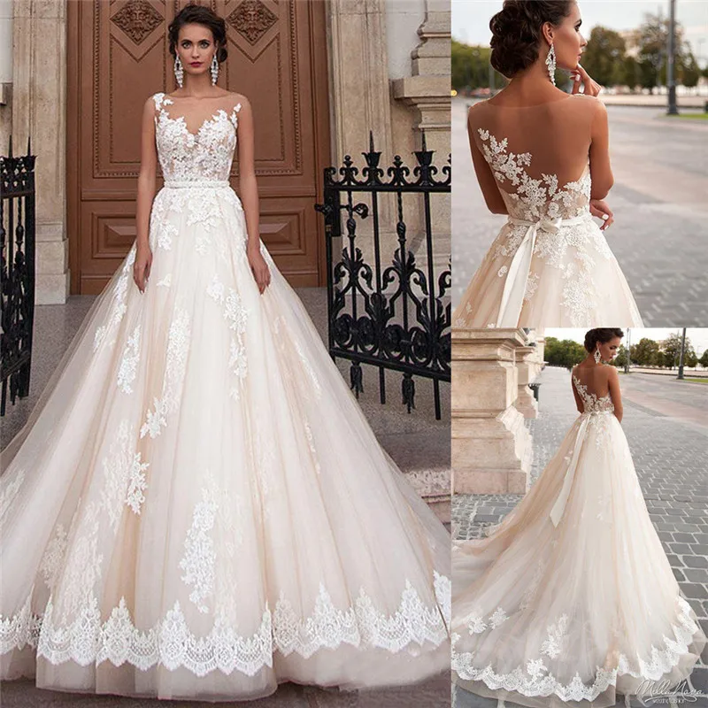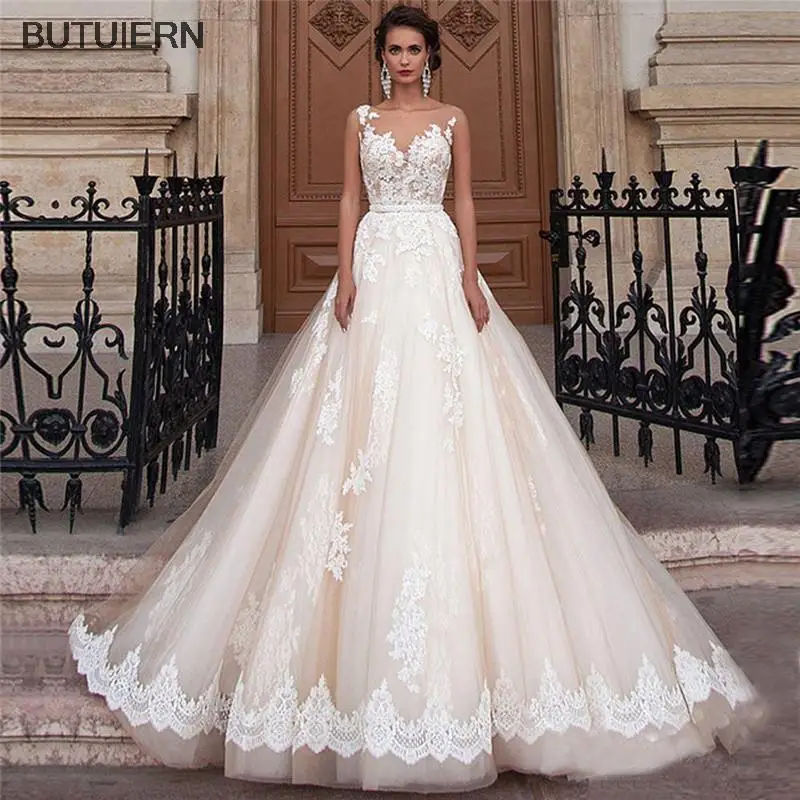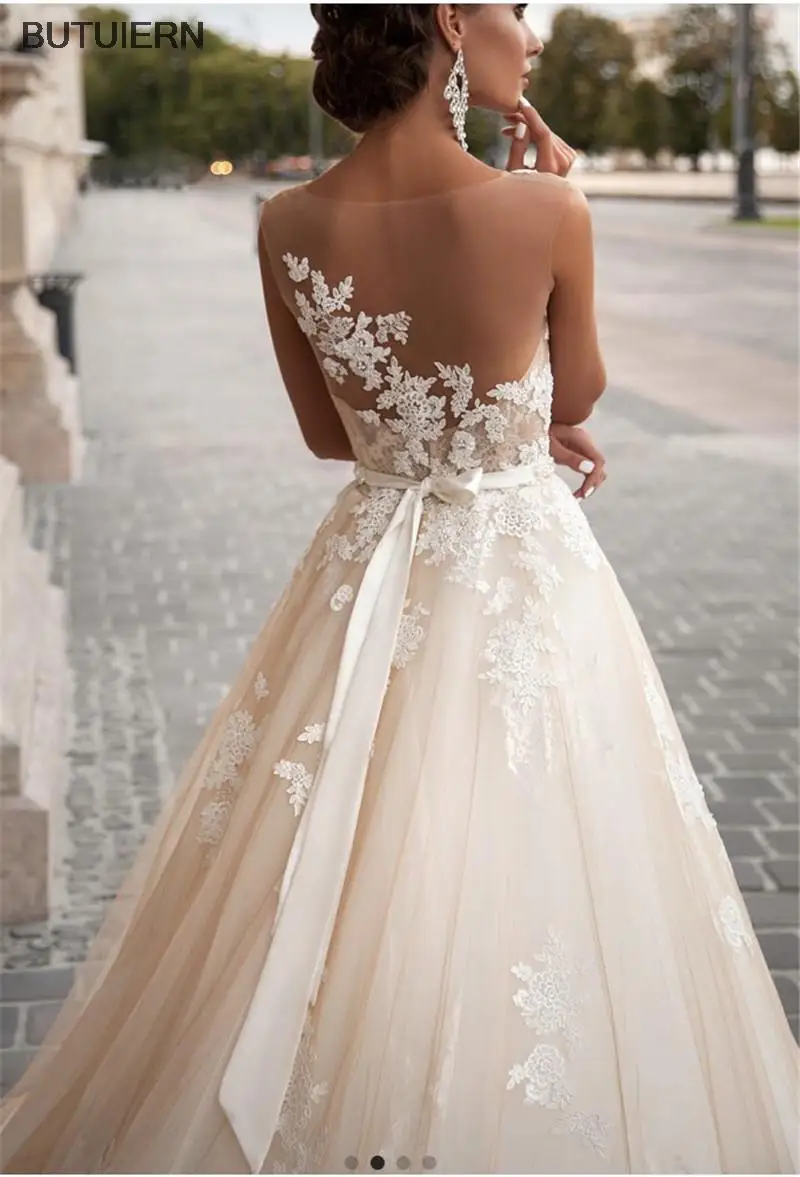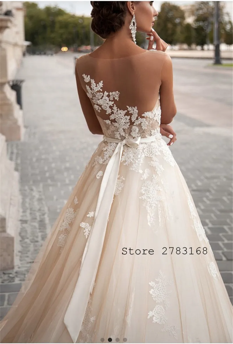 Потрясающее кружевное свадебное платье из мягкого тюля с аппликацией, свадебные платья с лентой, индивидуальный пошив, без рукавов, для принцессы, сада, свадебная одежда, официальное