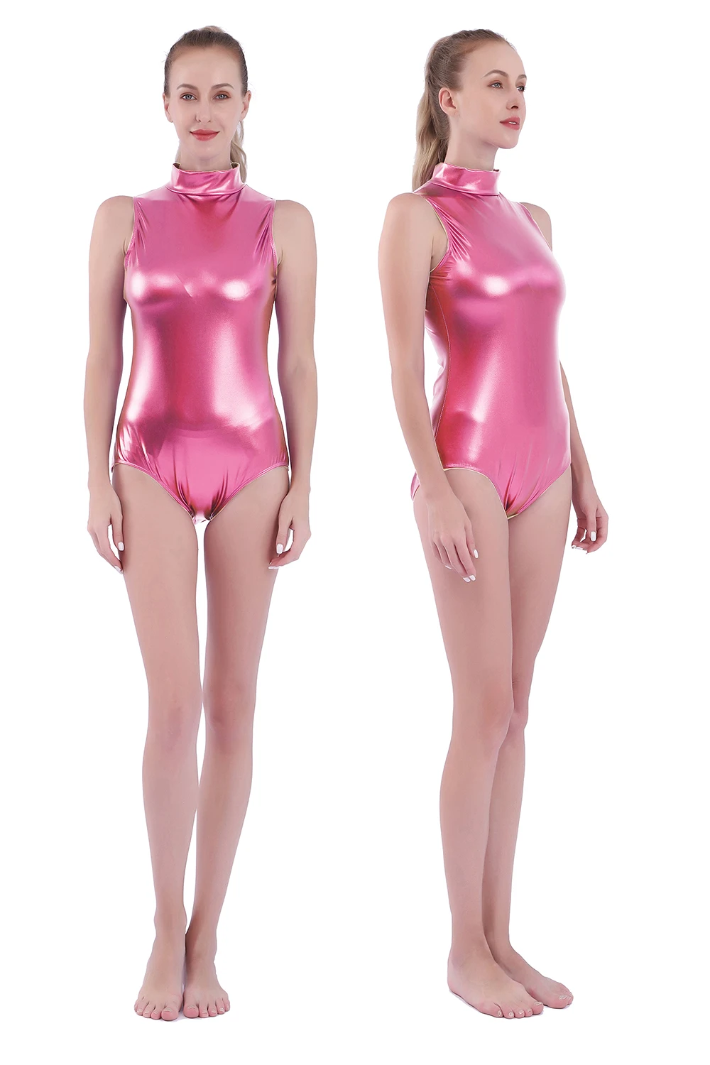 Aoylisey женское блестящее металлическое боди с высоким воротом, спандекс, цельное Боди для танцев