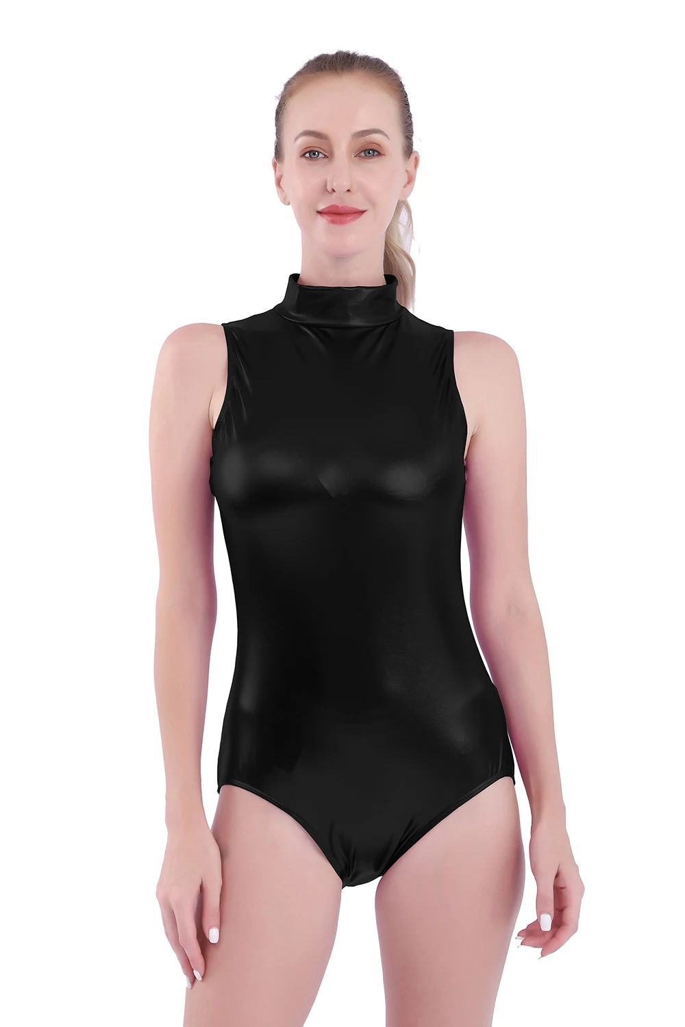 AOYLISEY, Женский Блестящий купальник без рукавов с эффектом металлик, черное боди, облегающие костюмы для сценических танцев, Купальник для балета, танцев