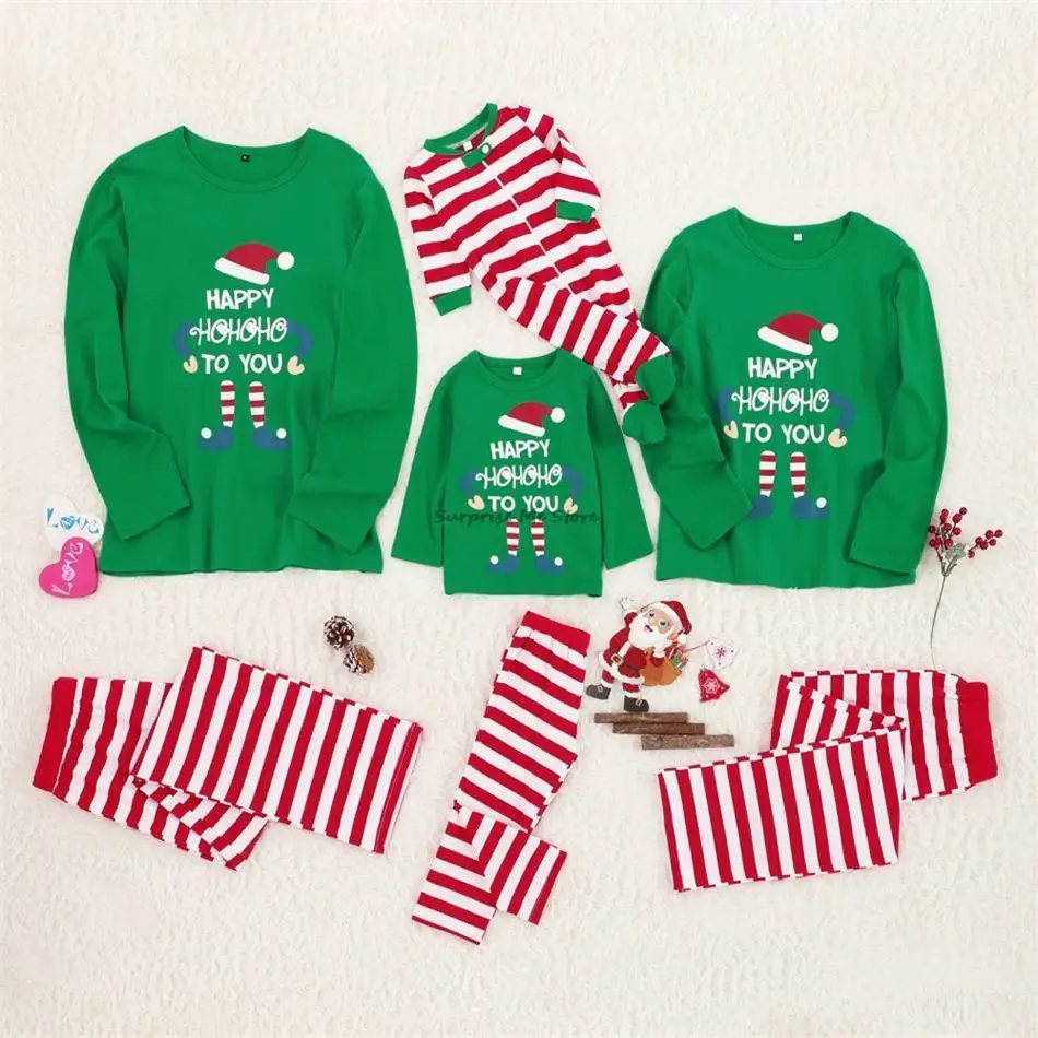 Рождественские одинаковые пижамы, Детская домашняя одежда, полосаты...