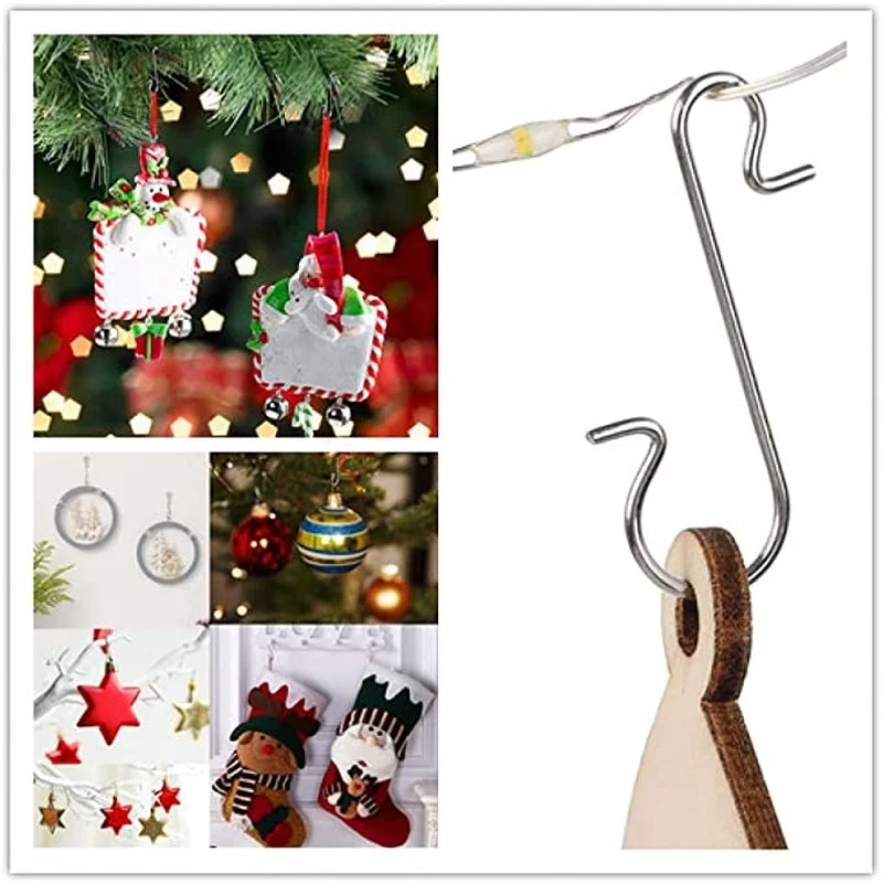 50 штук рождественских украшений, металлический S-образный кронштейн с крючком, подвеска в виде шара для рождественской елки, украшения для дома, Рождество, Новый год