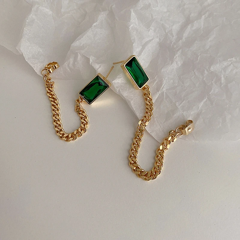 Классические геометрические прямоугольные зеленые стеклянные серьги...