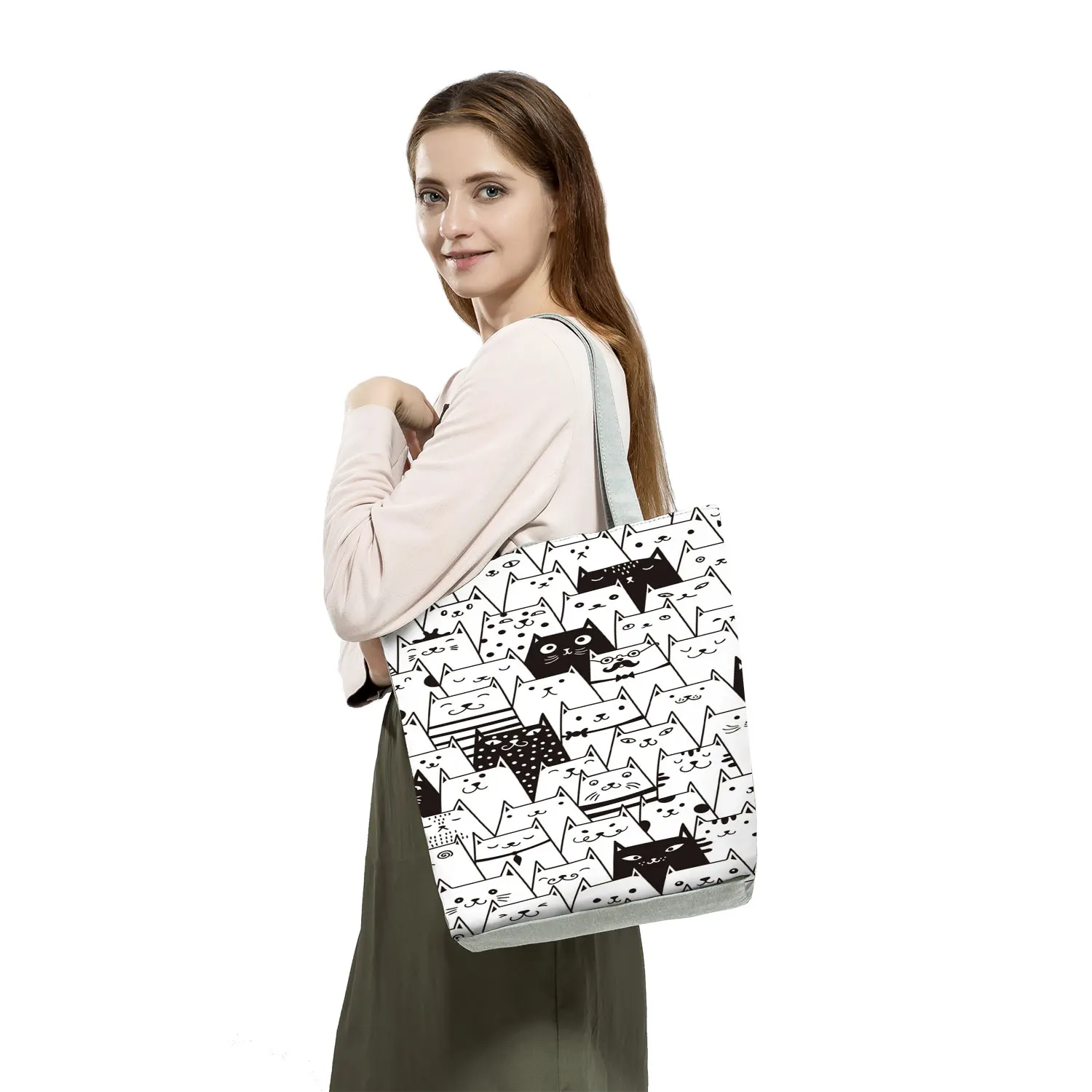 Женская сумка-тоут с милым мультяшным аниме принтом кота, модные сумки для школы, путешествий, покупок, сумки на плечо, многоразовые, на заказ
