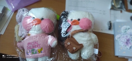 Утка хорошего качества, клюв на месте) на ленточке есть надпись, всё как должно быть. Дошла быстро.