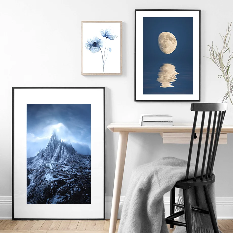 Картина на холсте с изображением голубого моря Луны, горного тигра, листьев, цветов на стену, скандинавские плакаты и принты, настенные картины для декора гостинойМатериал: экологически чистый хлопокХарактеристика: солнцезащитный, водонепроницаемый, никогда не выцветает