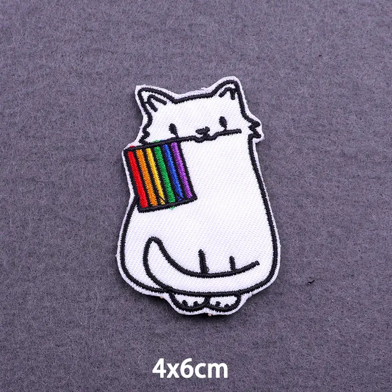 Мультяшные вышитые нашивки в стиле хиппи, кошка, кролик, животное, термоклейкие нашивки, наклейки на одежду, декоративная аппликация для шитья