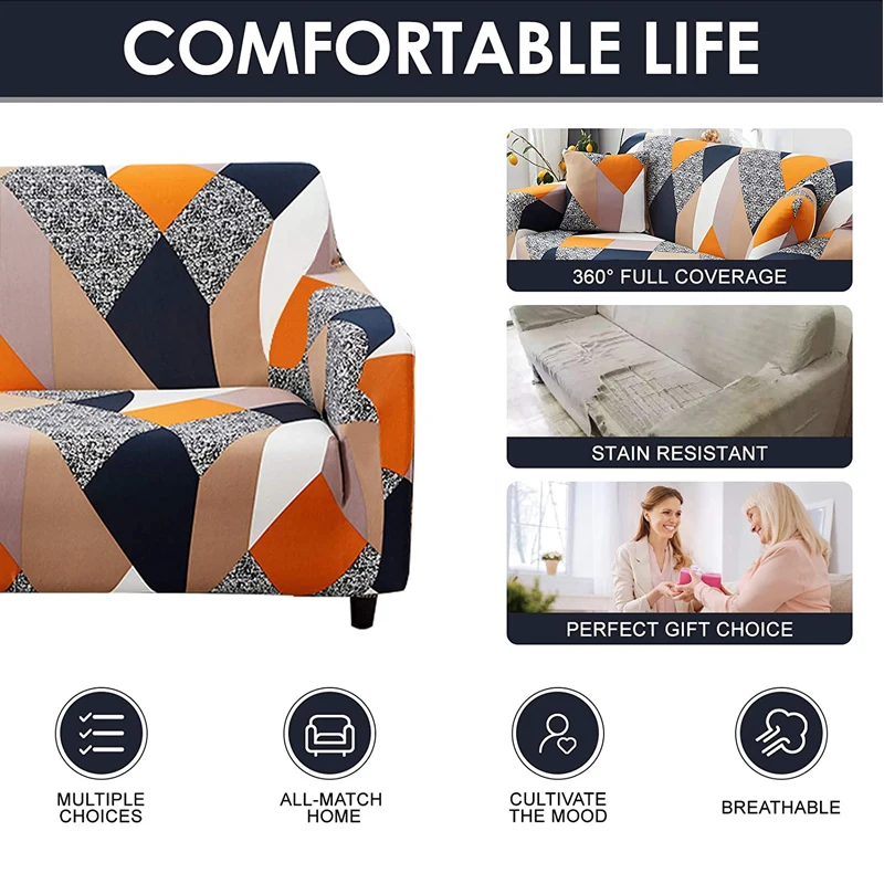Роскошный растягивающийся чехол для дивана с геометрическим принтом...