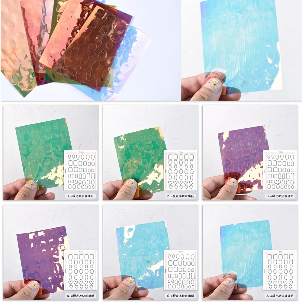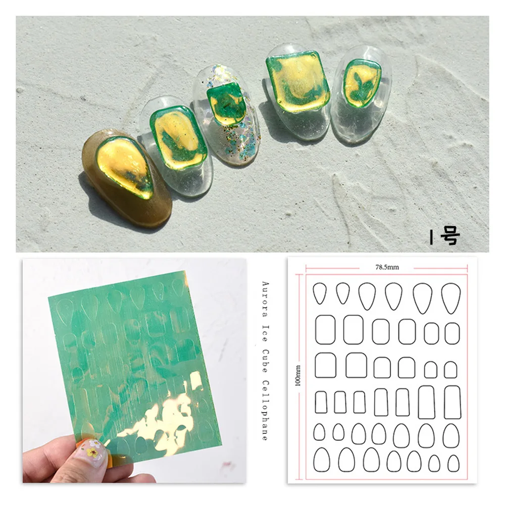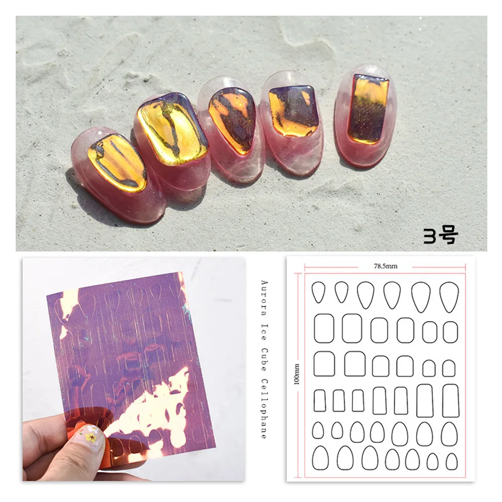 1 шт. 오로라 네일 아트 셀로판 네일 아트 알루미늄 호일 셀로판 한국 네일 아트 트렌드 디자인 스티커 DIY 네일 아트 장식 도구