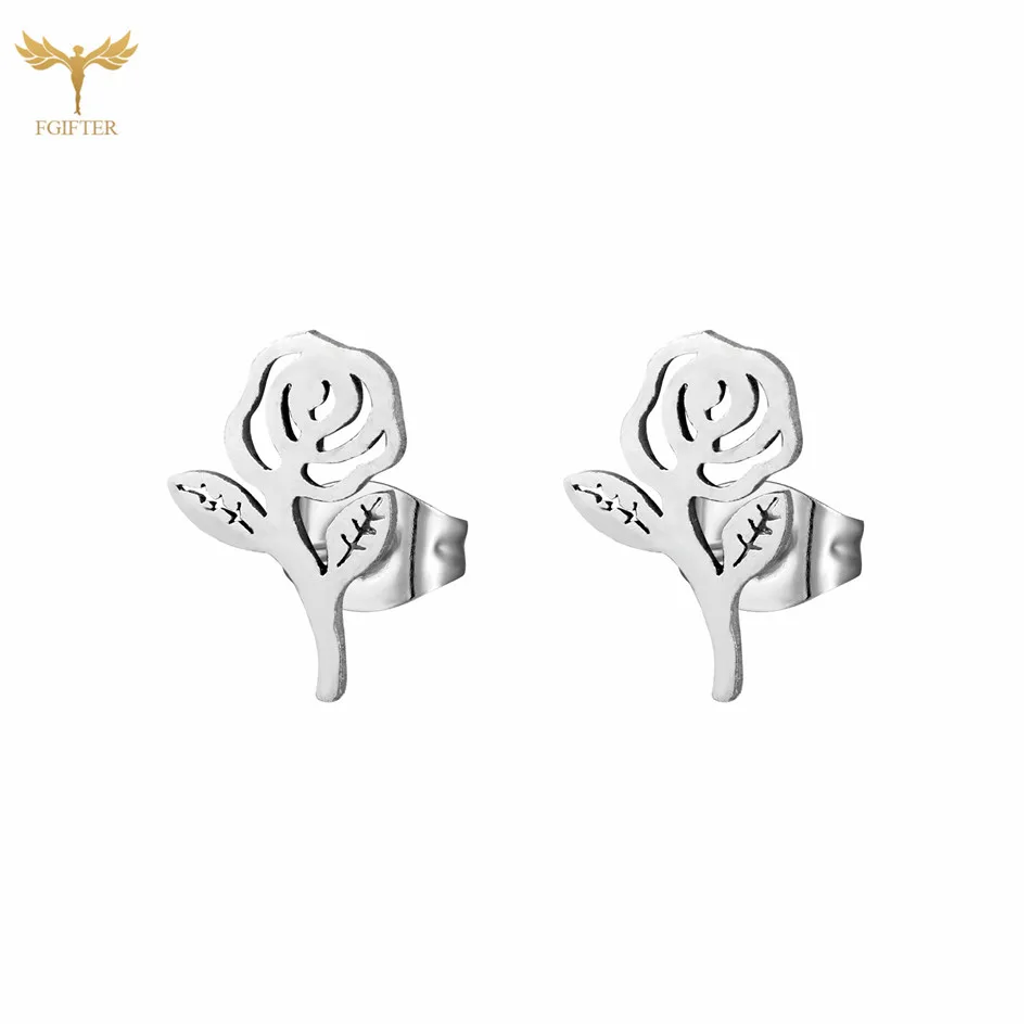 Женские серьги-гвоздики из нержавеющей стали, золотистыеСеребристыерозовые серьги-гвоздики, романтические украшения, 2022