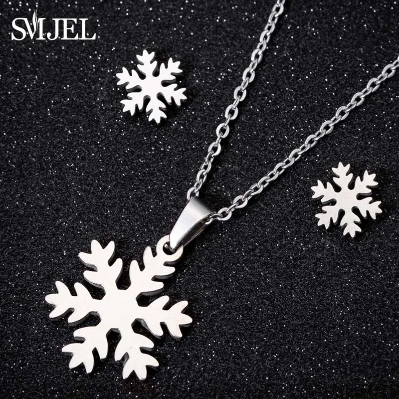 Зимнее ожерелье SMJEL из нержавеющей стали в виде снежинки для женщ...