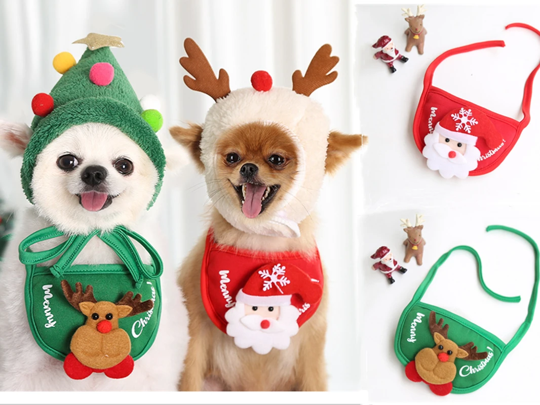 Рождественская слюнявчик Disfraz для домашних животных, Рождественская шапка, милая треугольная шапка-шарф с оленем и Сантой, креативный шарф для домашних животных, украшения для собак, красивые украшения