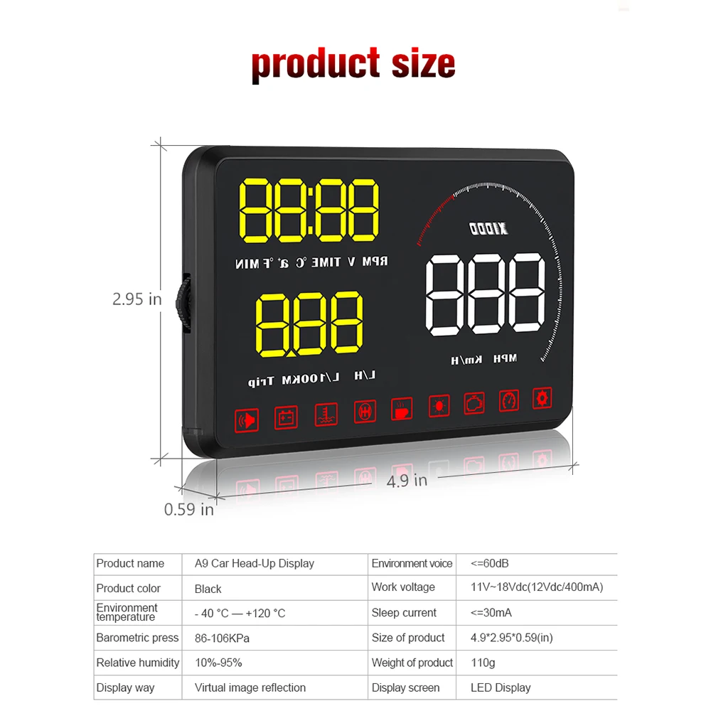 Проектор на лобовое стекло автомобильный, OBDII EUOBD