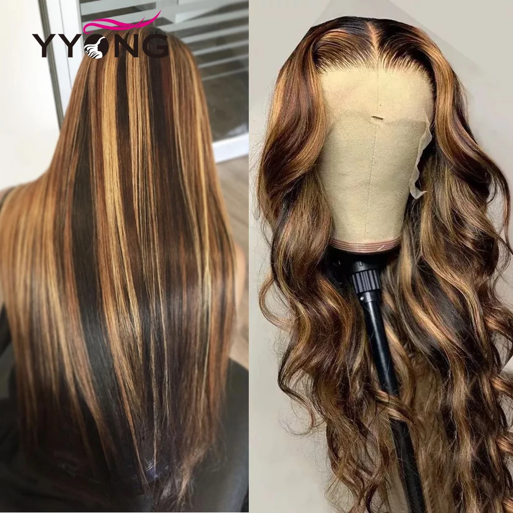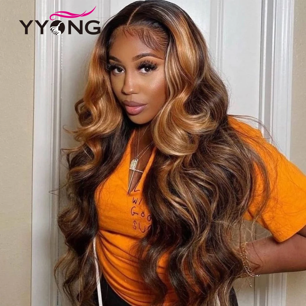 Yyong хайлайтер парик человеческие волосы 427 Омбре коричневый медовый блонд бразильские волнистые волосы Remy T часть кружевные парики для женщин предварительно выщипанные