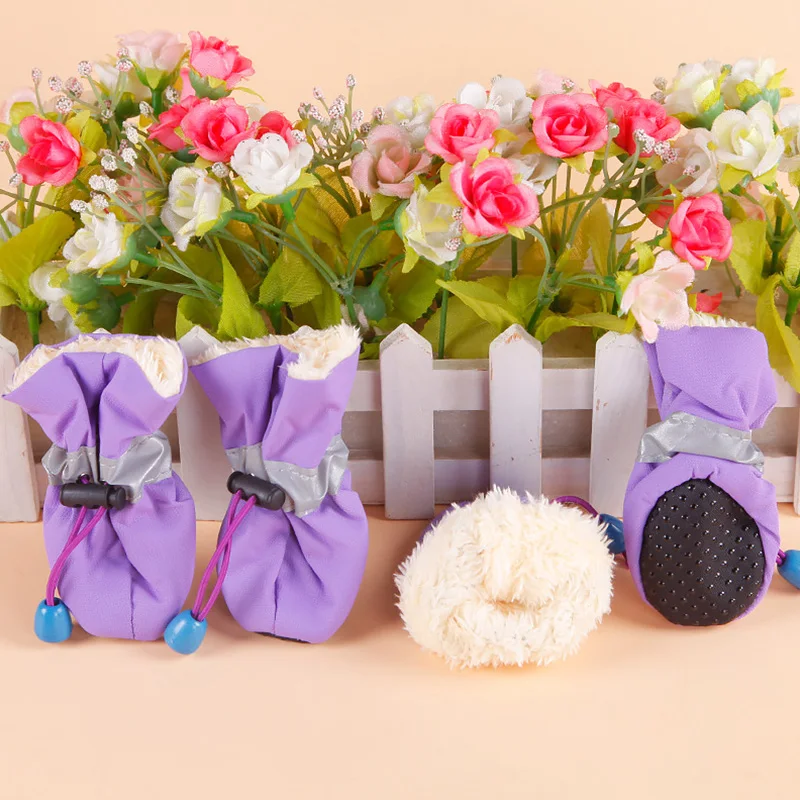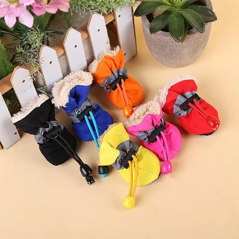 Водонепроницаемая зимняя обувь для домашних животных, 4 шт., Нескользящие сапоги для дождя и снега, обувь, толстые теплые носки для маленьких кошек, щенков, собак, носочки, ботинки