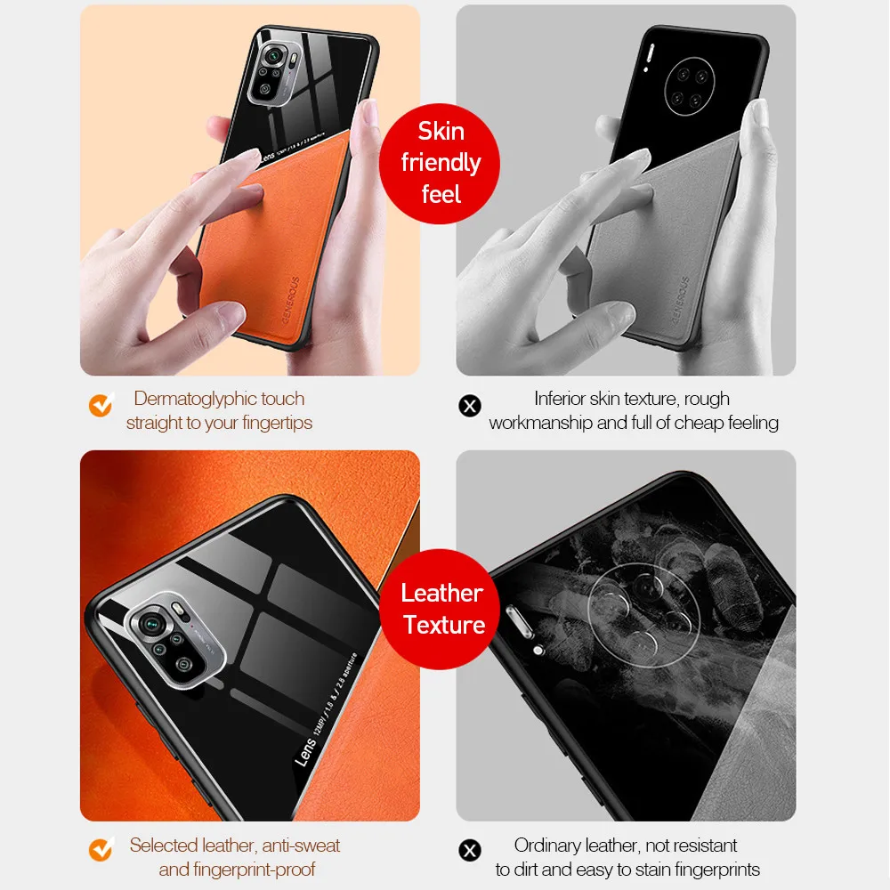 Feature 1Silicone Frame shockproof Leather Plexiglass back phone Cover case