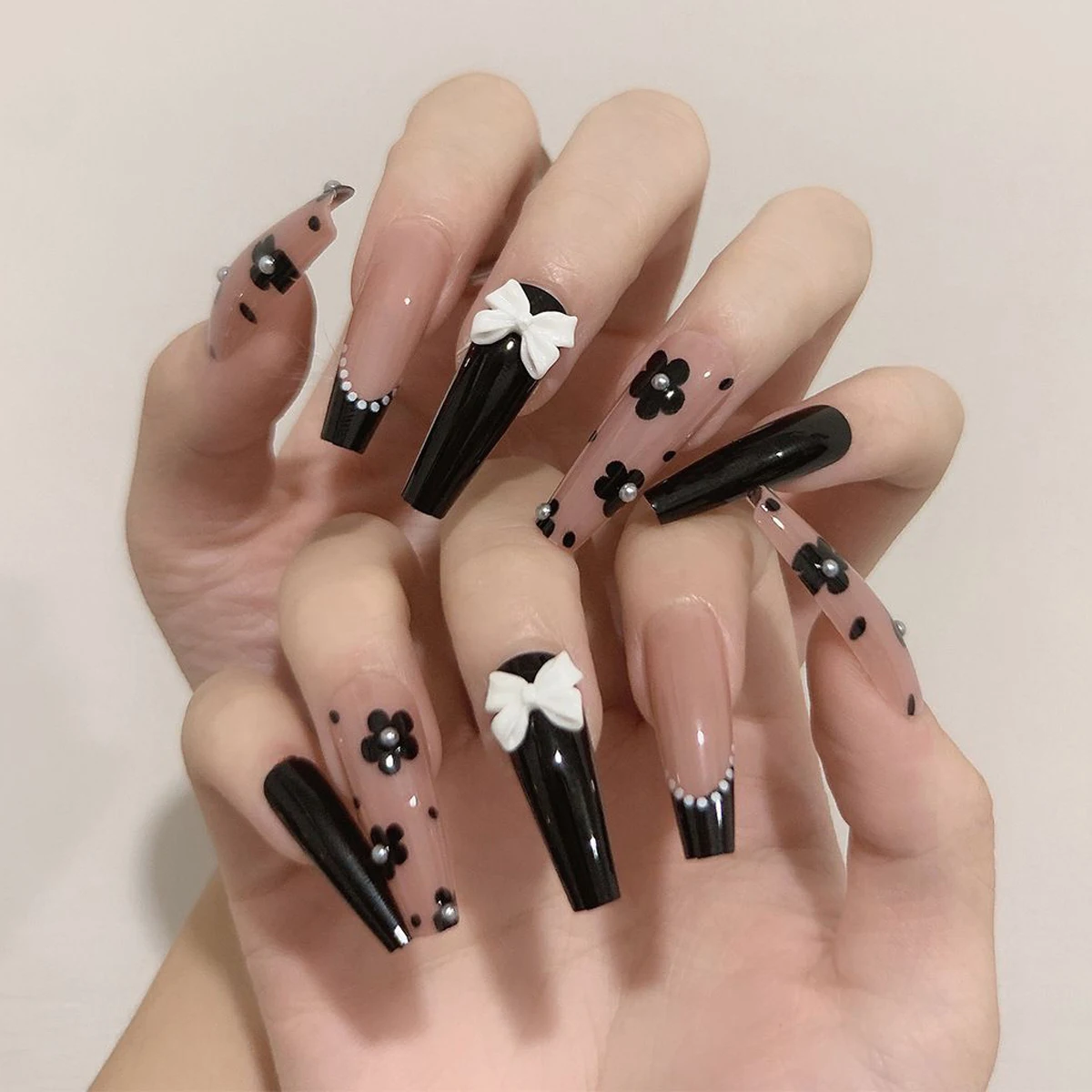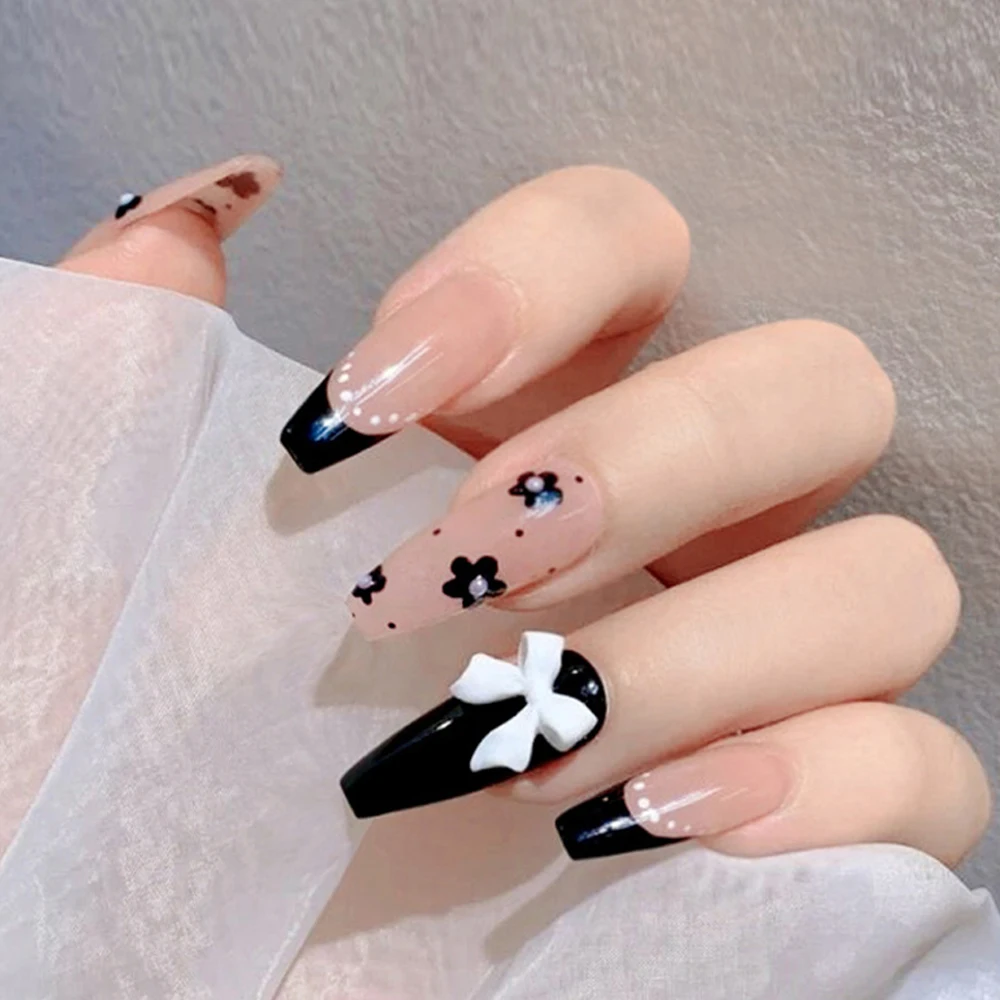 Гроб, искусственный ноготь с 3D бантом, украшенный, съемный длинный абзац, модные наклейки, полное покрытие, акрил для девушек