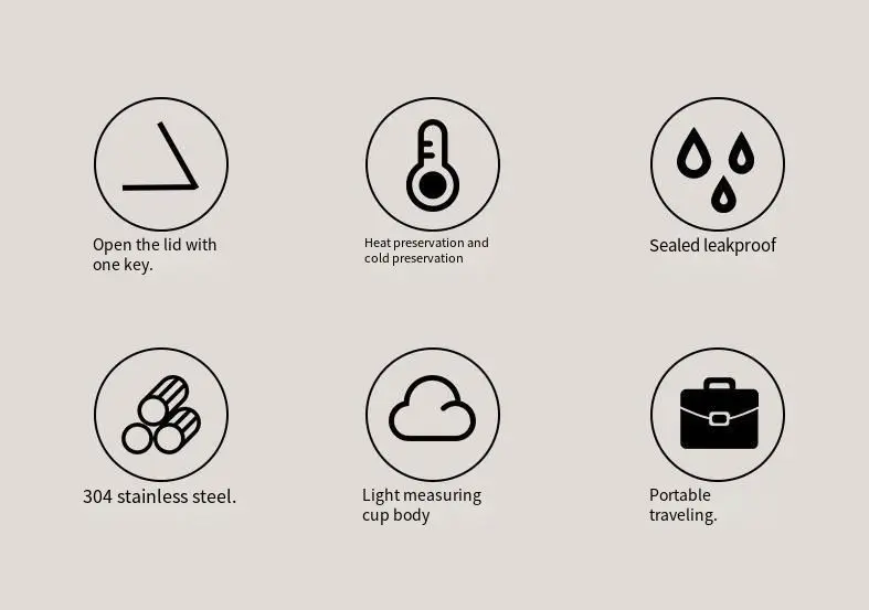 1. Легко открывается одной рукой и одной кнопкой. Легко открыть крышку, чтобы пить воду, не касаясь носаПряжка не отскочит, с одной рукой открывается, легко пить воду2. Внутренний бак из нержавеющей стали 304, стабильное использование. Я не хочу расти, я просто хочу думать о вас3. Портативная и компактная конструкция, легкая и легкая чашка для питья, портативная, чтобы наслаждаться лучшей жизнью4. Герметичная и герметичная, одноклавишная открытая крышка5. Изоляция и холодное сохранение, нержавеющая сталь 304