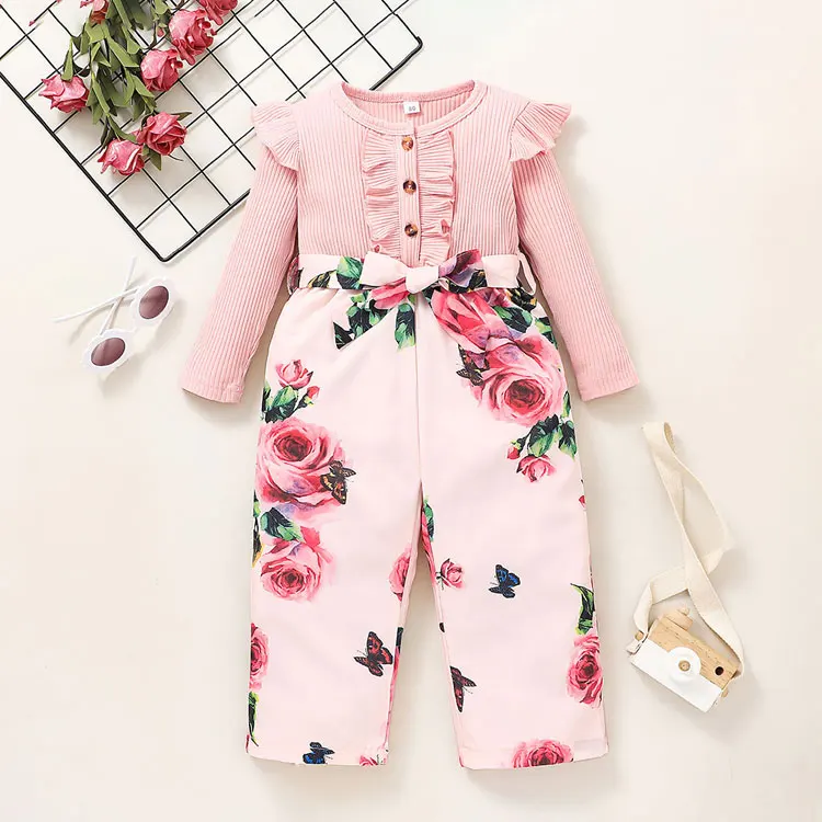Детские комбинезоны на весну и осень, модные прямые детские брюки для девочек, хлопковая детская одежда с кулиской, брюки для девочек