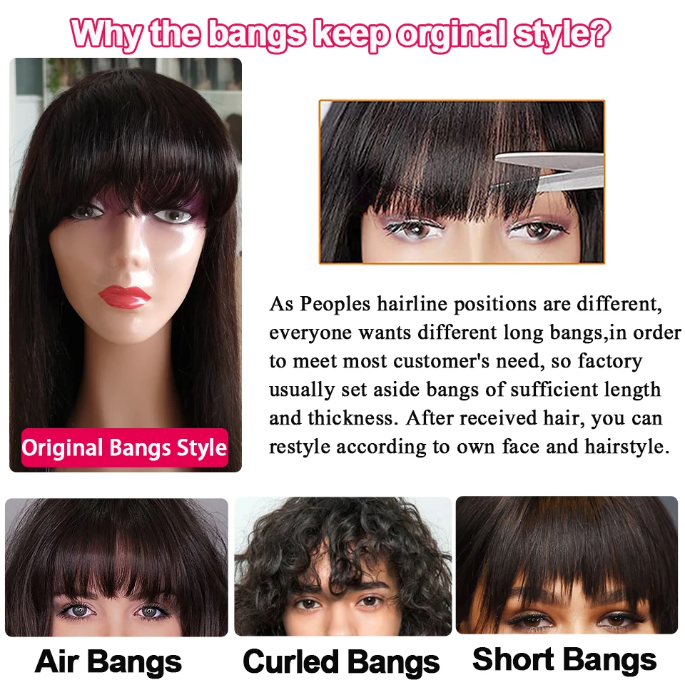 Материал: 100% человеческие волосыСтиль: парики с бахромойДлина: 8 ~ 34 дюймаЦвет: Естественный цвет может быть окрашен и отбеленСпособ изготовления: полная машинаПлотность: 150% ПлотностьРазмер шапки: средний размерВремя доставки: отправка в течение 24 часов в будние дни