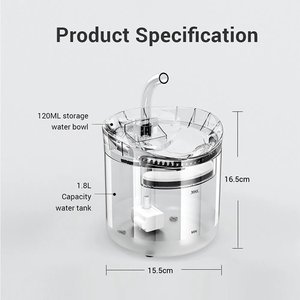Характеристика:Автоматический фонтан для воды для домашних животныхПолностью прозрачный дизайн.2L большая емкость отлично подходит для собак, кошек, домашних животных.2 режима потока воды (режим крана/режим фонтана), обеспечивая чистую проточную воду, сделайте ваших питомцев счастливее и здоровее.Спецификация продуктаМатериал: пищевой ПКЦвет изделия: полностью прозрачныйМаксимальная емкость: 2 литра (67 унций)Размер изделия: прибл. 16,5x16,5x15,5/6.5x6.5x6.1in (Д * Ш * В)Время замены фильтра: один раз в месяц для достижения хорошего эффекта фильтрации. (Заменяйте фильтрующий элемент один раз в 2 месяца в режиме Интеллектуального датчика)Советы: Регулярно очищайте насос, чтобы продлить срок службыТеплые Примечания:О датчике движения:1. Автоматическое включение проточной воды при приближении питомца, оставьте диапазон срабатывания 2-3 метра, фильтр в течение 30 секунд, а затем автоматически Встаньте;2. Преимущества: бесшумный, энергосберегающий, продлевает срок службы фильтрующего элемента и водяного насоса, и может лучше привлечь домашних животных, чтобы пить больше воды3. Индукционный диапазон: около 0,2-3 метра. Диапазон использования: любой диспенсер для воды с интерфейсом USB может использоваться d.4. Разъем USB: метод подключения USB jack для легкого подключения. Общая длина кабеля составляет 1,6 м.Инструкции:1. Вставьте usb-разъем фонтанного насоса в входной порт USB датчика.Затем вставьте usb-разъем датчика в адаптер.2. Отсасывайте датчик в одном месте. (блестящая или глянцевая гладкая поверхность)Если рядом нет домашних животных, он будет оставаться неподвижным, но он будет автоматически циклировать и фильтровать четыре раза в день, каждый saix часов, чтобы обеспечить чистую воду.